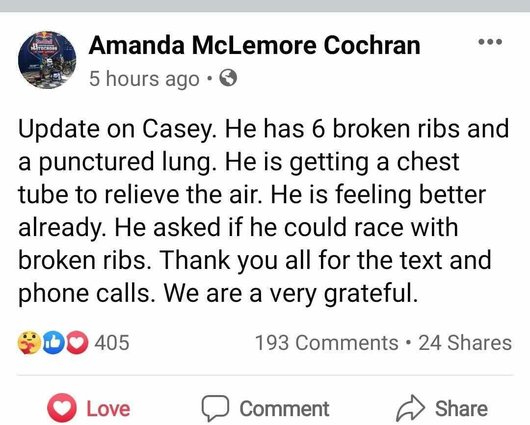 The Drama:Yesterday we hyped the Supermini rivalry between Haiden Deegan and Casey Cochran. Well, things changed completely in today’s first moto of Supermini 2. Cochran holeshot but then washes the front and crashes. Gets up, crashes again. That’s it for him, he doesn’t finish the moto and apparently suffered injuries in the second crash that resulted in a trip to the hospital. Deegan starts horribly and has to come all the way back to snag a podium. He battles past Krystian Janik and after a game of cat and mouse, Deegan accidentally downshifts on the takeoff to a jump, comes up short, and gets landed on. He DNFs the moto. Out front, Enzo Temmerman took the race win ahead of Janik, Adler Caudle, and Noah Viney. However, after the race, both Temmerman and Janik were penalized two positions apiece, bumping Temmerman to third and Janik to fourth, and officially moving Caudle and Viney into the 1-2 positions, giving Caudle his first ever moto win at the Ranch. After the race, Deegan posted the following video update, explaining he downshifted going up to the face of the jump where he and Janik collided. The KTM rider said he is banged up and bruised but otherwise uninjured.