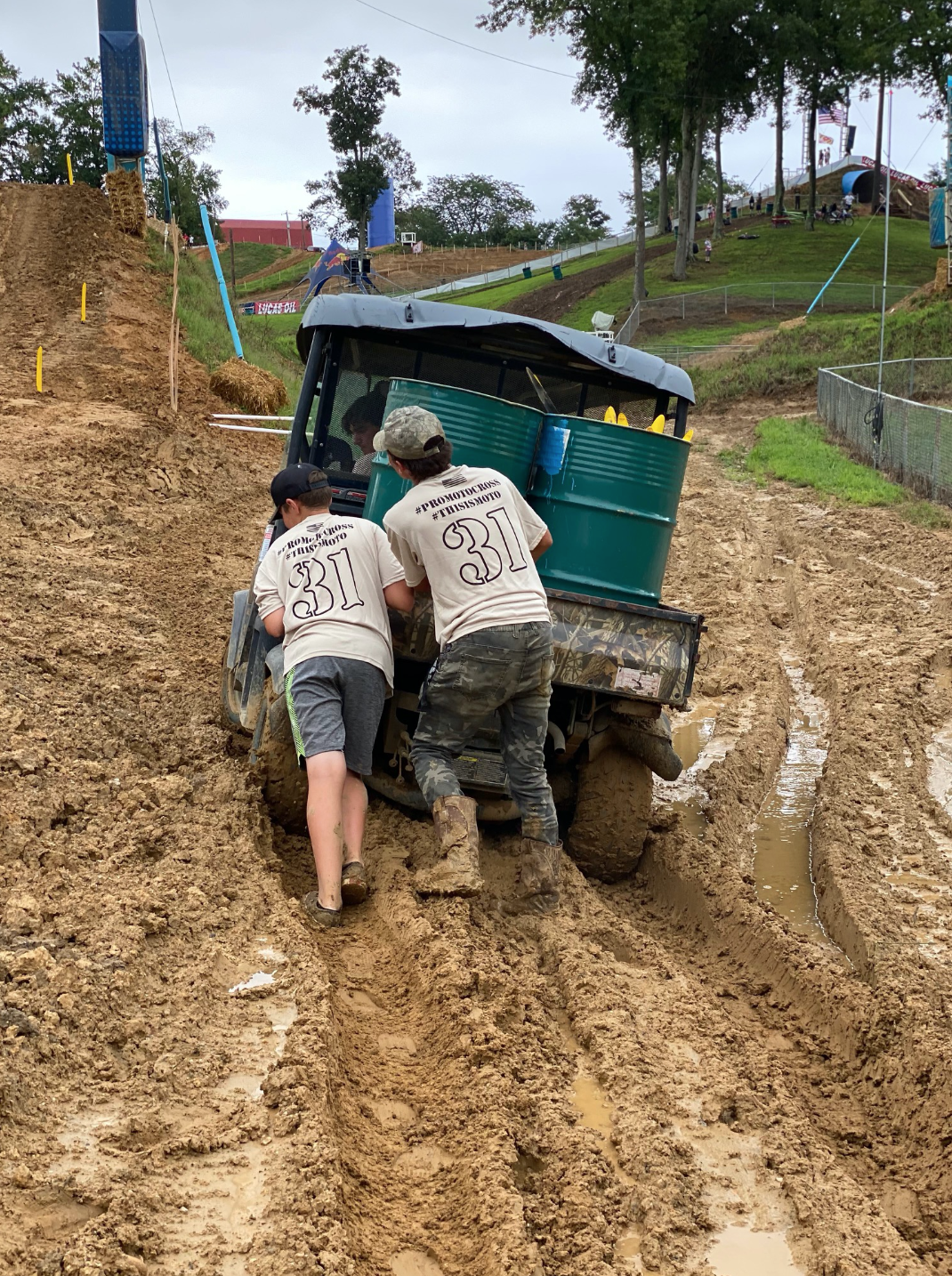 It's a rather quiet day here at Budds Creek since the place got absolutely blasted with rain for much of the week, so amateur practice was canceled. Fortunately, Jason Baker of Dream Traxx and his crew are here, and they did a superb job of sealing the track up as best they could so the rainwater would run off, but a bunch of new dirt was trucked in a few weeks back that is rather soft, so expect some messy morning practice sessions tomorrow as the track hopefully dries out. Had we been racing today it would have been a muddy mess.
