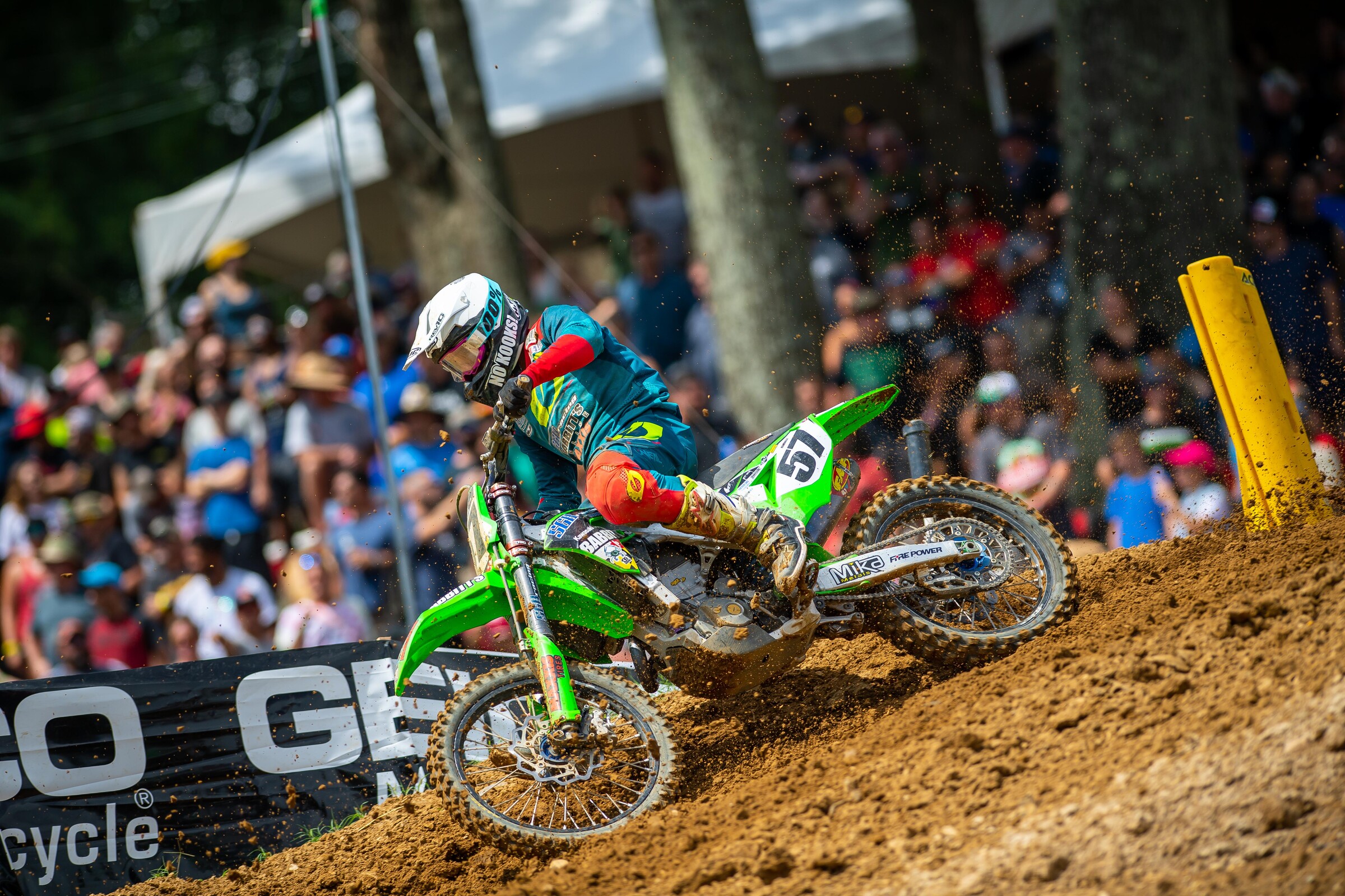 Today was pretty good for me. Another step in the right direction. Went 7-11 for ninth overall. First moto, got a good start and just kinda kept it there the whole time. I think [Marvin Musquin] ended up going down and yeah, I just kinda capitalized on that and finished seventh. I was like, ‘Heck ya, that’s pretty cool!’ Second moto, the jump was okay. And then a few of us went down in the first turn, it was kinda a domino effect. [Dean] Wilson and I literally both came from last. I’m not sure what he got second moto, but I came from 40th to 11th. And for me to do that type of ride, it goes to show that I belong up there. It was a really good ride for me. I gave it 110 percent, everything I had. To get tenth overall last weekend and to get ninth overall this weekend, I’m like, “That’s pretty cool!” So we’ll just keep building and enjoy riding our dirt bike honestly.