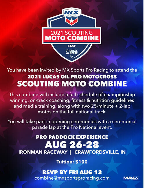 MX Sports Pro Racing has announced a significant initiative to further the continued development of the next generation of talent in American motocross. The MX Sports Pro Racing Scouting Moto Combine will serve as a critical tool in preparing racers for the transition from the amateur to professional level of the sport in both the Lucas Oil Pro Motocross Championship and AMA Supercross.