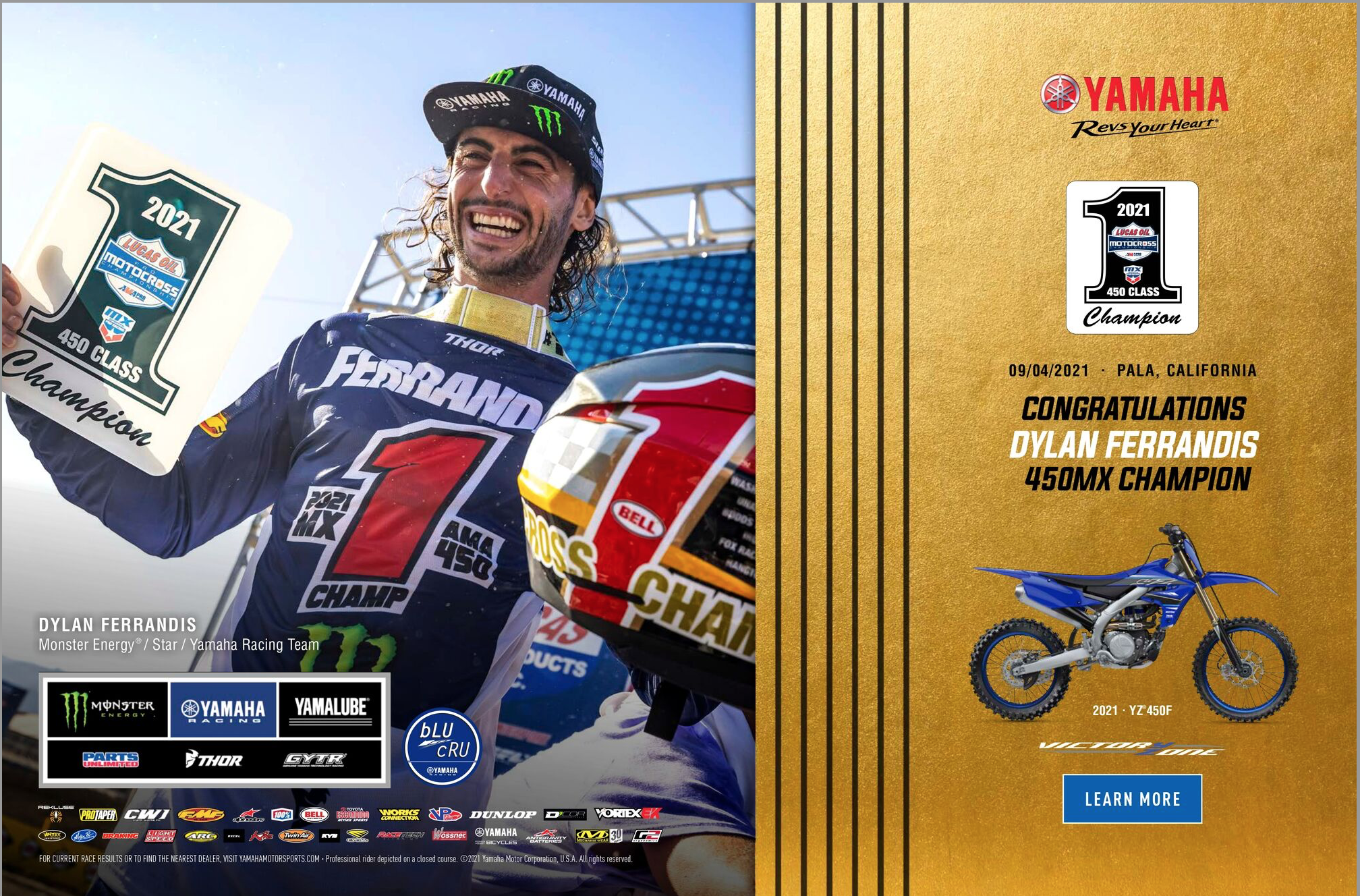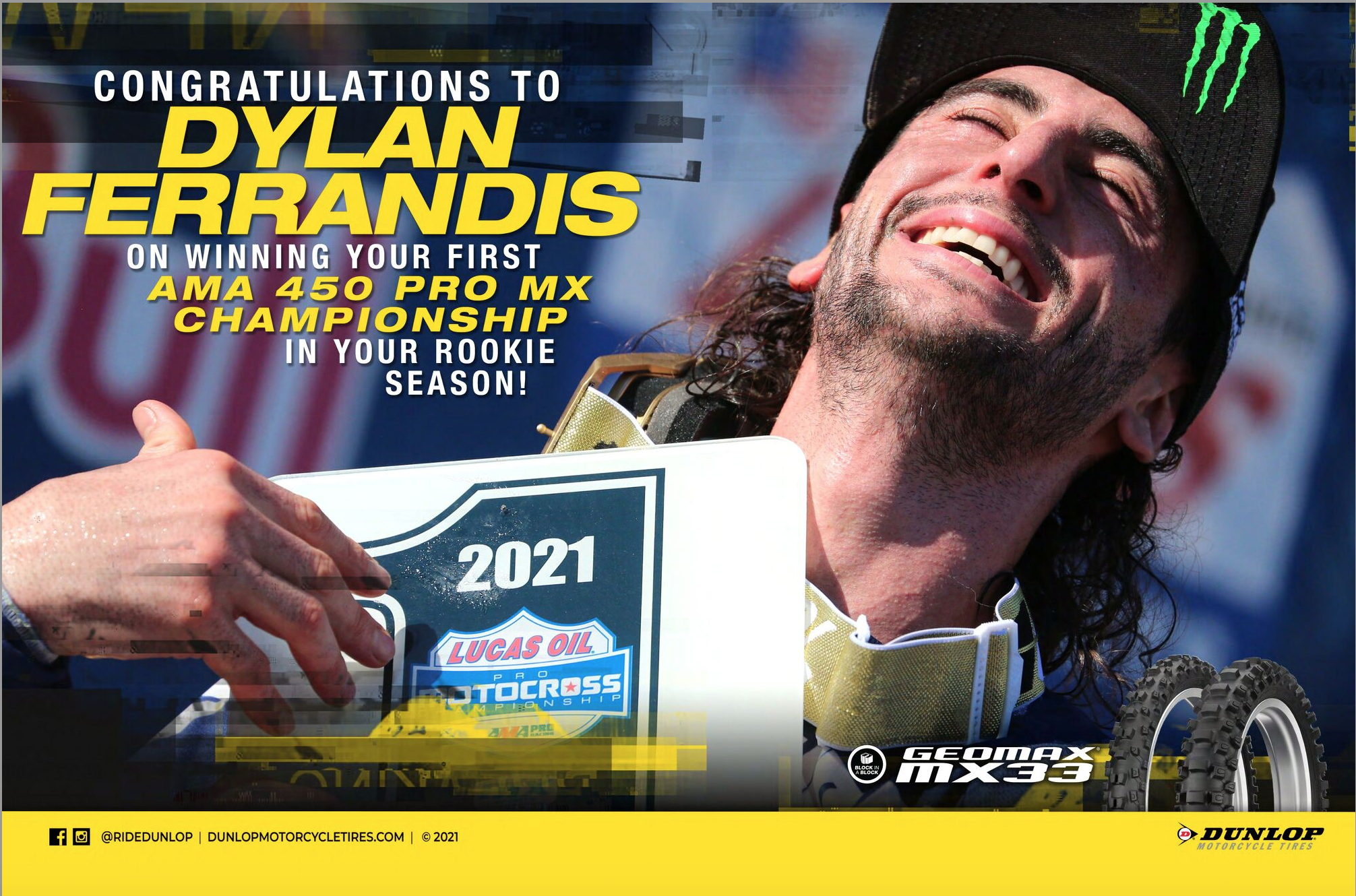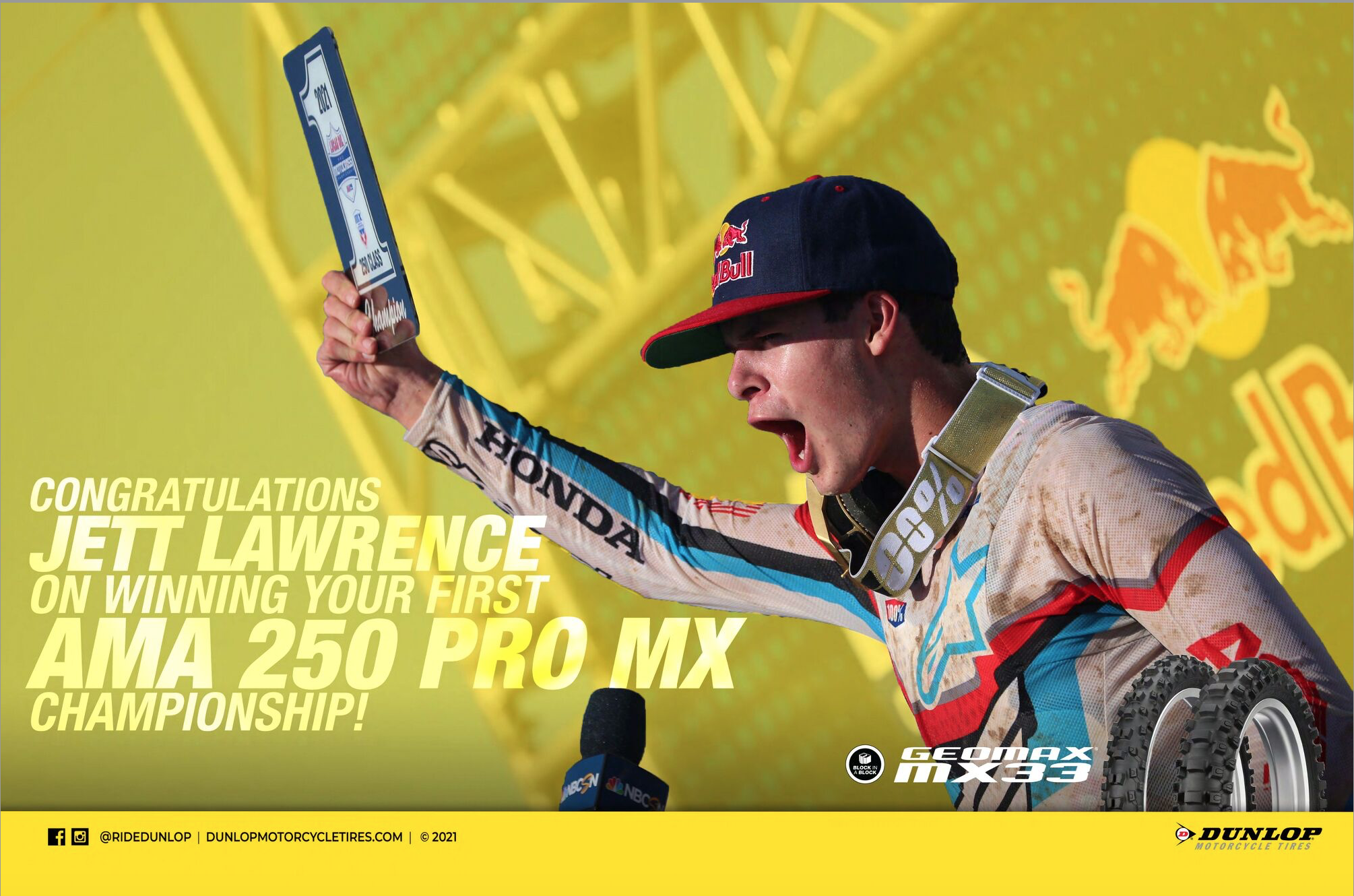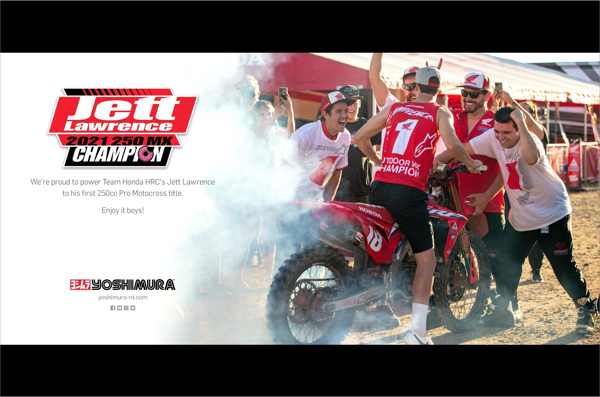 While the Ferrandis' championship ads had a mostly #1 plate vibe, with Jett Lawrence one week later his podium burnouts were the hot championship ad theme in Cycle News...