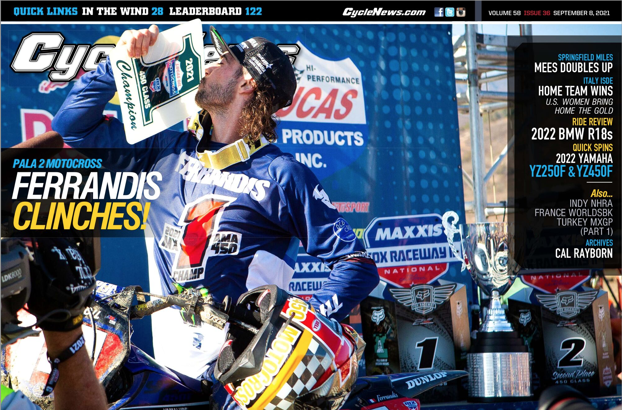 Welcome to Racerhead, coming to you on the first weekend of the 2021 off-season, at least here in the U.S., as they are racing this weekend in Sardinia below Italy as the Monster Energy FIM World Championships plow on. The AMA season ended with the Hangtown Classic last weekend—the latest Hangtown Classic ever, but better than 2020 when it didn’t even happen! Thankfully, we were able to get all 12 rounds of Lucas Oil Pro Motocross in, and for the first time ever, both AMA National Motocross Champions (that’s for you, Jim M. from the O.C.) are foreign imports. Australia’s Jett Lawrence became the first Australian to ever win the AMA 250cc Pro Motocross Championship, joining 450 titlist Dylan Ferrandis of France as 2021 AMA Pro Motocross #1’s. Lawrence made it more dramatic than need be, as he struggled with crashes at Hangtown, trimming his own comfortable 23-point advantage into a 6-point nail-biter at the end. As for Ferrandis, he finished just the way he started this tour, winning the 450 overall with 1-3 moto finishes, just like he had at the season opener back in May, only this time he had to come from about last in the second moto to earn that overall win.