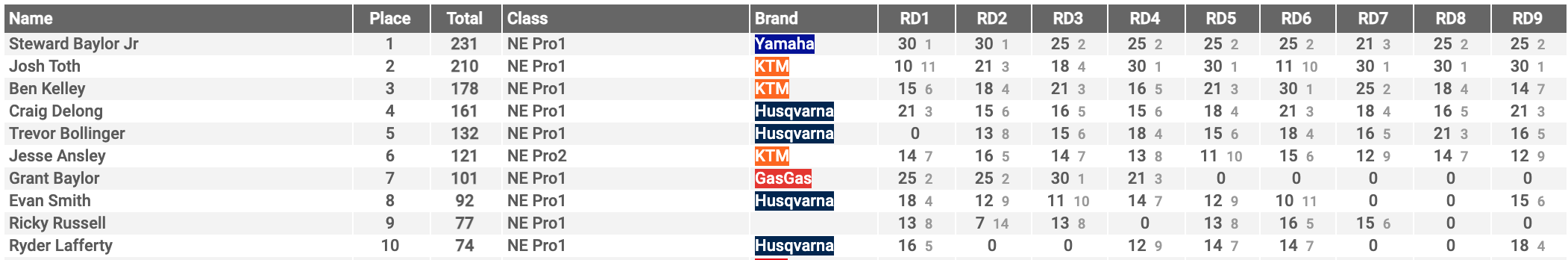 | Steward Baylor Jr. | Kenda AMA National Enduro Series | Pro1 |