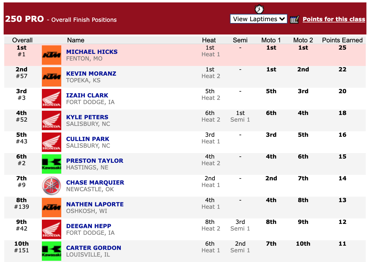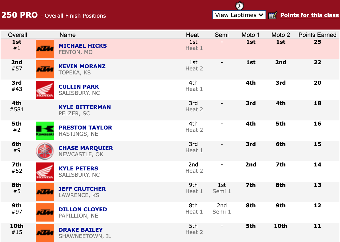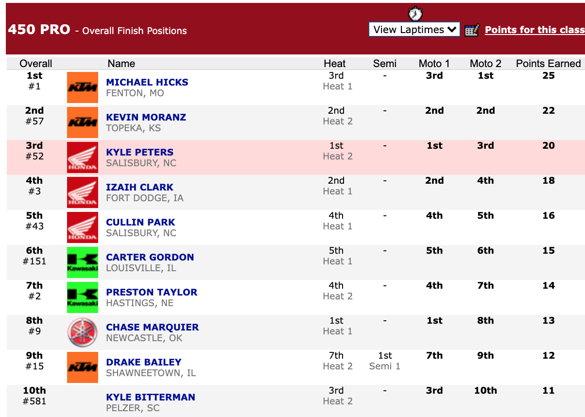 | Michael Hicks | Hoosier Arenacross Series | 450 Pro |