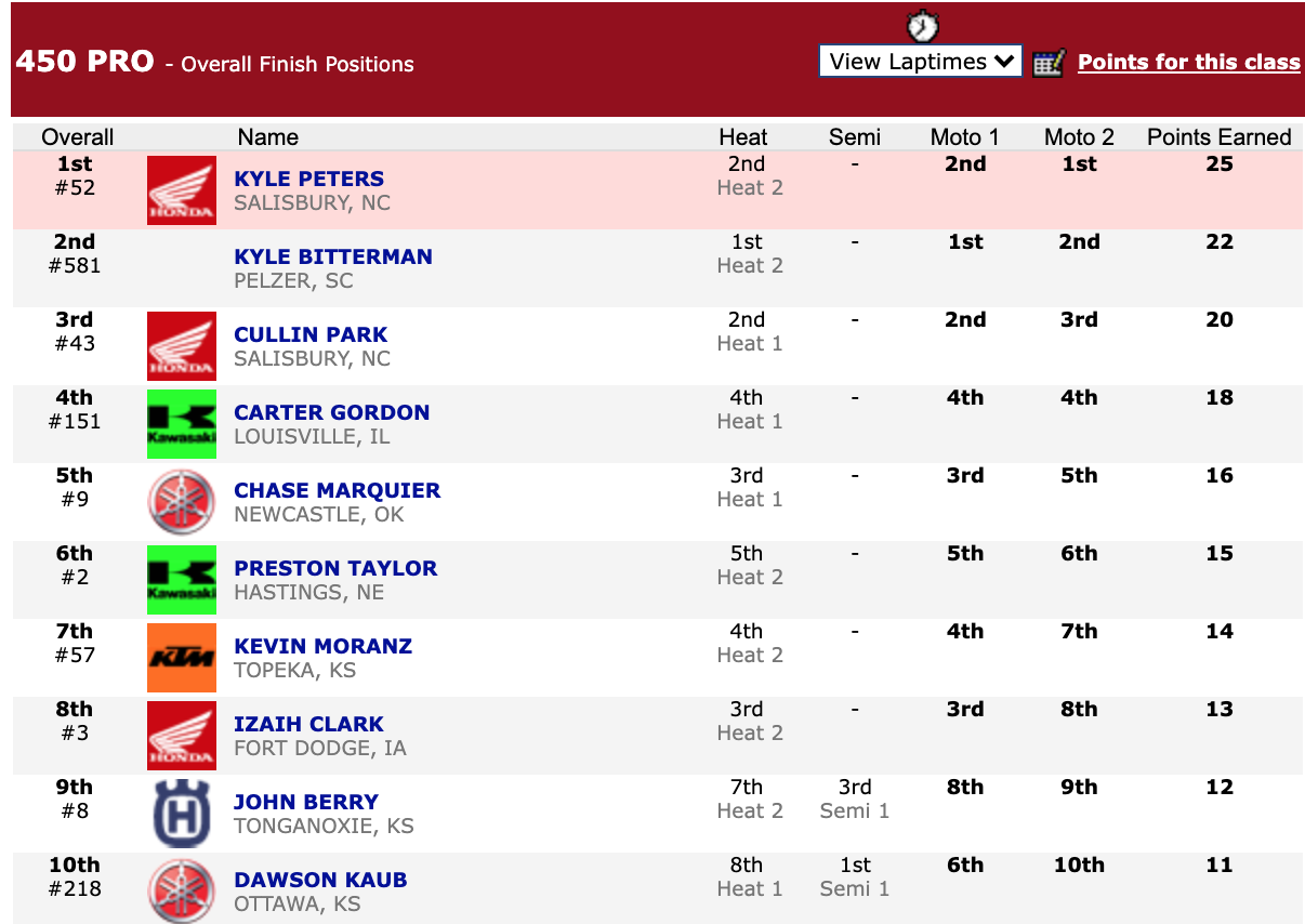 | Dylan Ferrandis | Lucas Oil Pro Motocross | 450 Class |