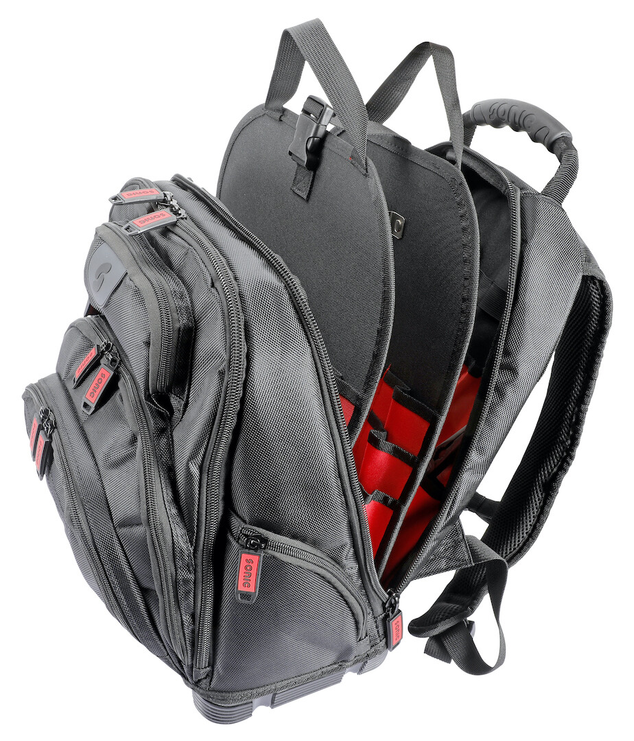 The Sonic tool backpack is the ultimate storage solution for professionals on the move. The tool bag has a strong plastic base to keep your tools clean and in pristine condition, even when using the tool bag outside and in challenging conditions. The backpack enables you to effortlessly carry your tools to places where traditional toolboxes cannot reach or are simply not suitable. And all of this, while having your hands free for work. The removable lay-in gives you easy access to all your tools and multiple functional storage compartments allow you to safekeep additional items and personal belongings.