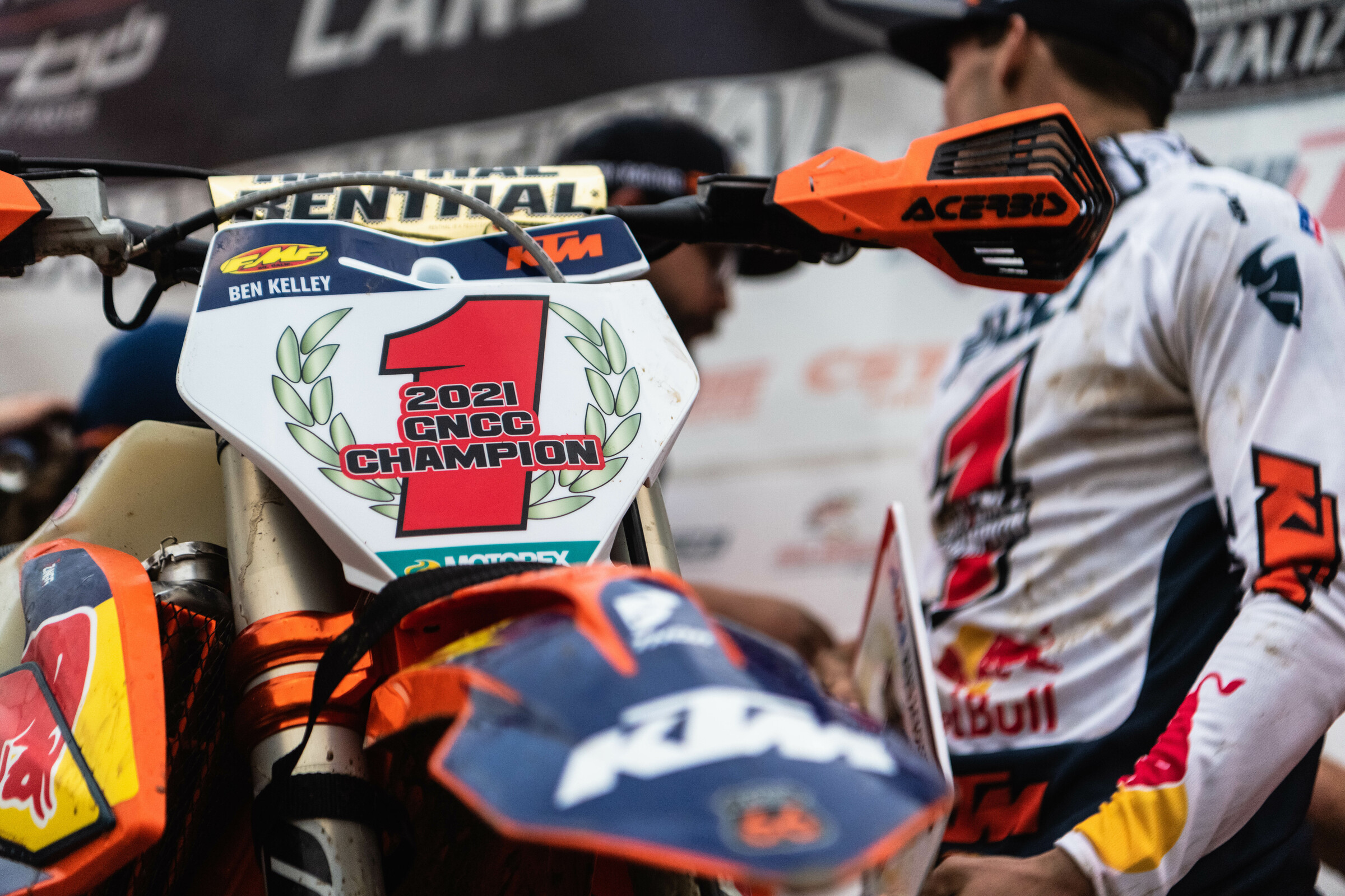Now the 25-year-old is the new champion of the Grand National Cross Country (GNCC) Series, which is a big deal because Kailub Russell had gobbled up the last eight GNCC titles. Russell stepped aside from off-road racing in 2021, opening the “who else will win?” sweepstakes. It led to a fascinating battle to the wire between Kelley, of the same FMF KTM off-road team as Russell, and AmPro Yamaha’s Steward Baylor. Lots of pressure, lots of spotlight. Kelley grew up racing in New England and didn’t even really follow GNCC racing as a kid and is still relatively new to this level of success, so it was a lot of stress, pressure, and distraction.