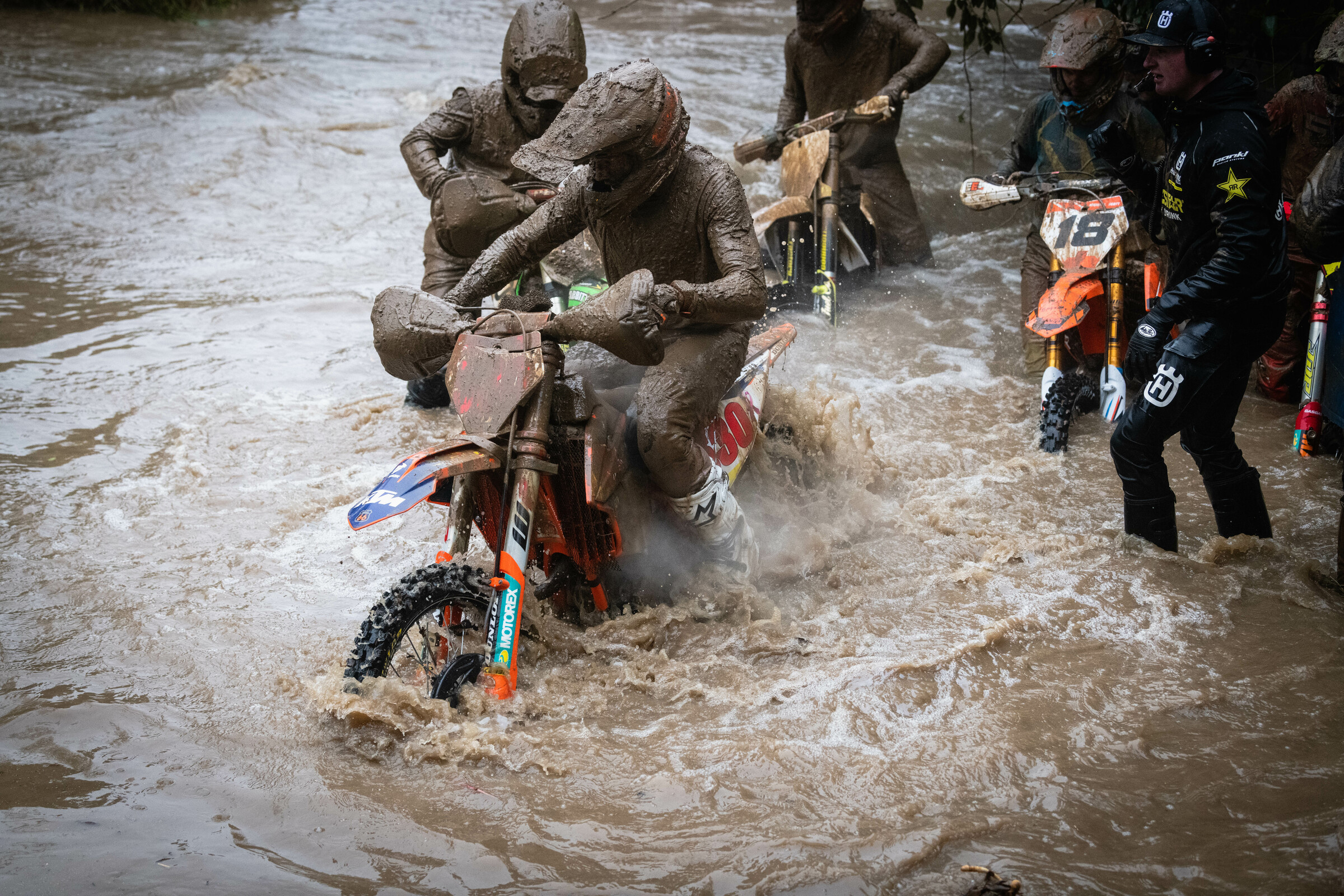 That was another new experience for Kelley. Then came the final stage. Epic rain all night and all morning before the Ironman GNCC finale. Kelley would have to finish third if Baylor won, and in these conditions, anything can happen.