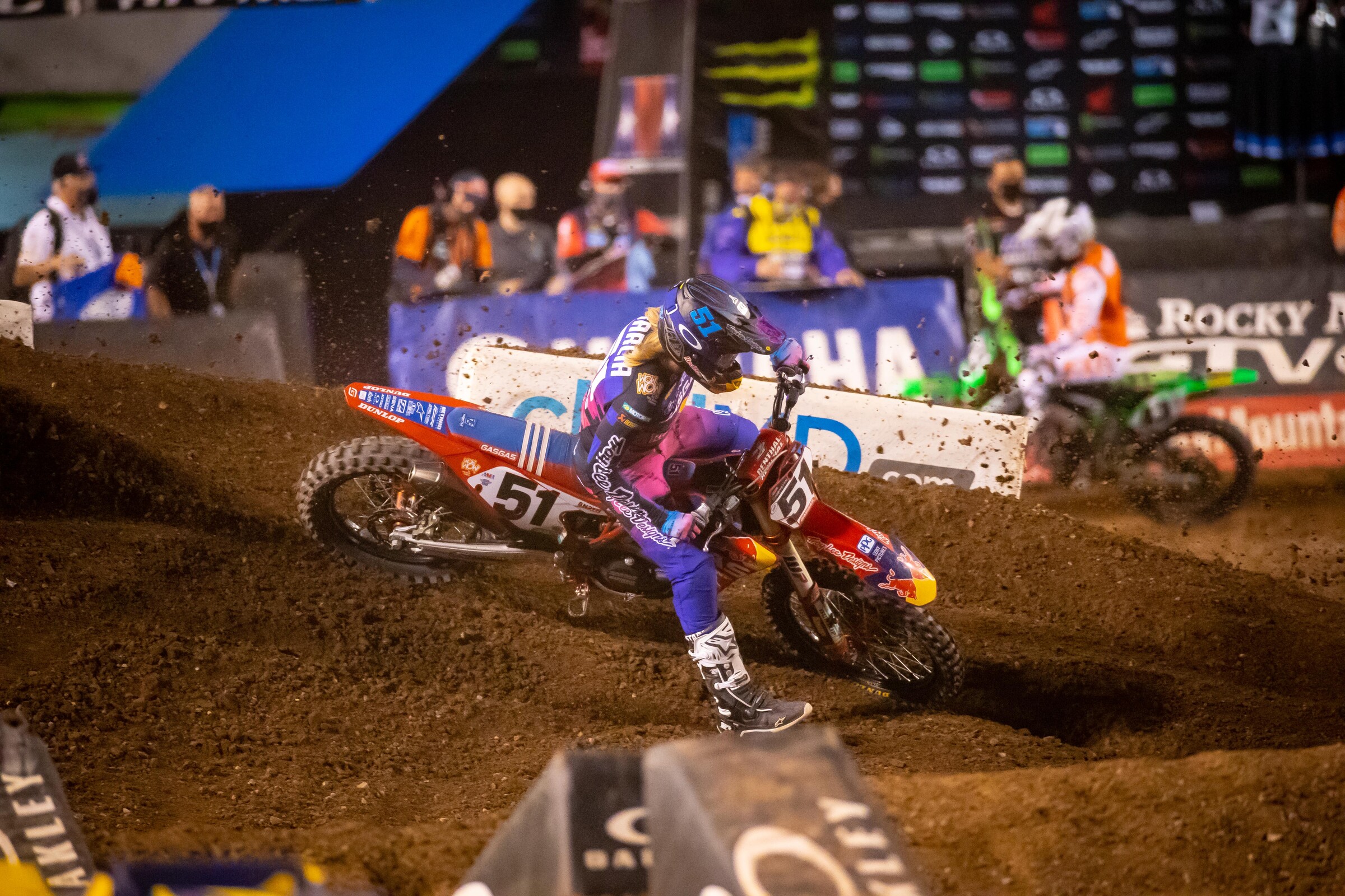 Plus, he won races. As in, the very first race. It was a bold move by Troy Lee Designs and Red Bull to literally rent Angel Stadium and create a fake 2021 Anaheim 1, with Barcia as the fake winner. It must have put immense pressure on him to Barcia to perform at the actual season opener, in Houston. But pressure is when Barcia rides best, which is probably why he usually wins the most nerve-wracking race of the season. In Houston, he did it again.