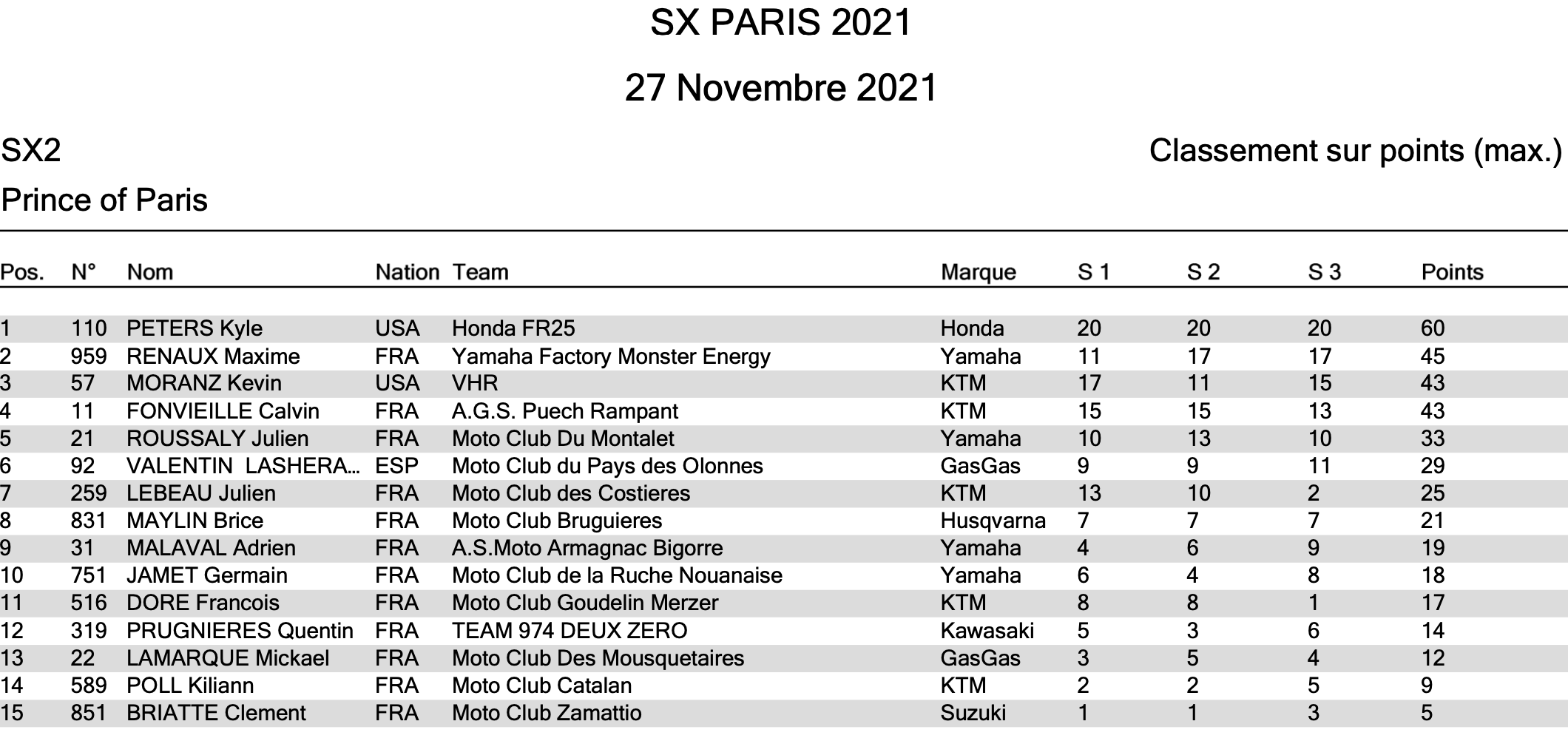 | Kyle Peters | Paris Supercross | Prince of Paris (SX2) |