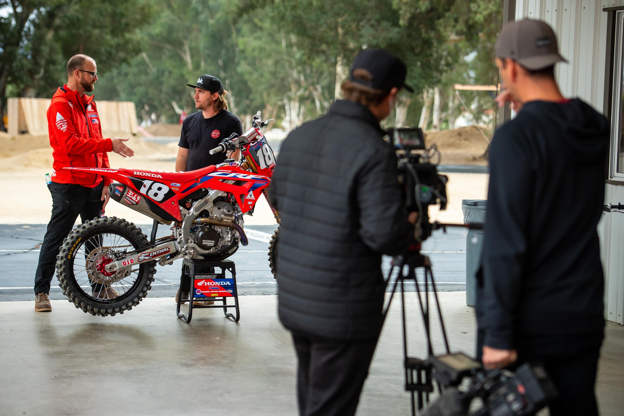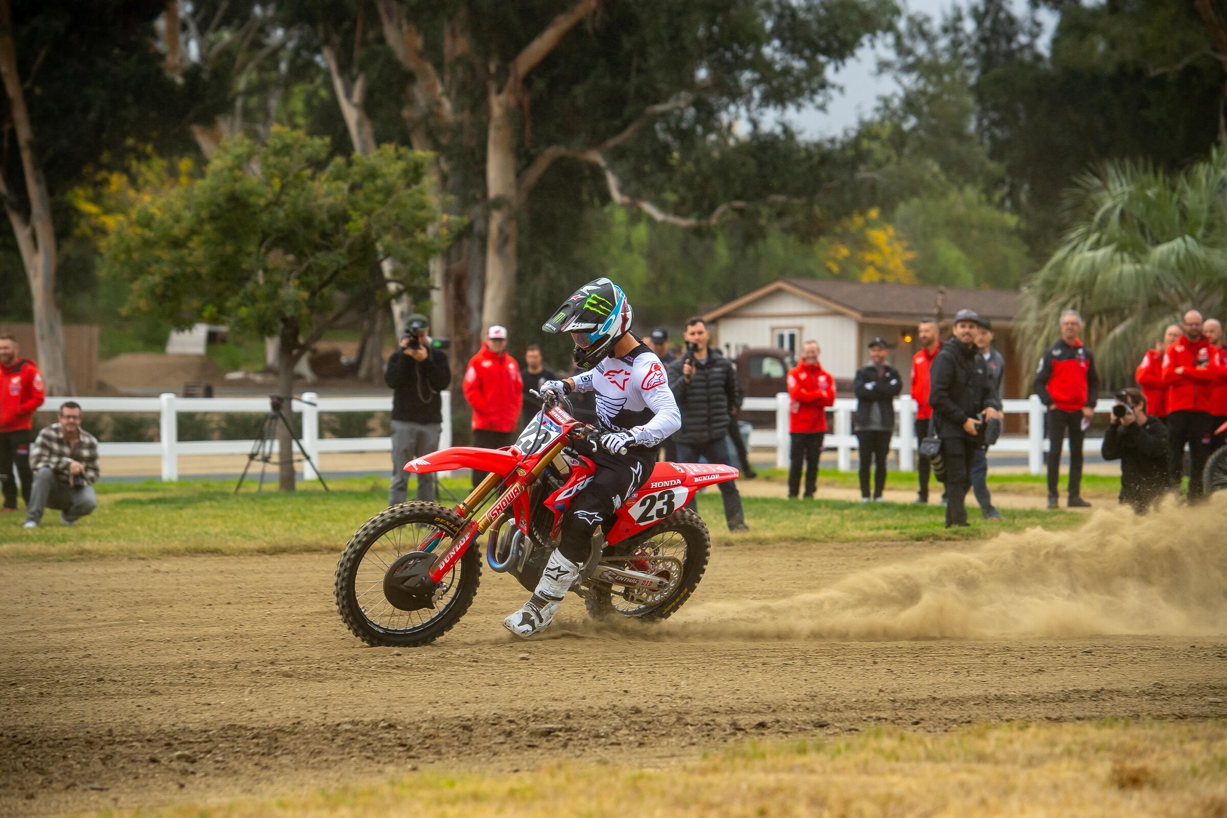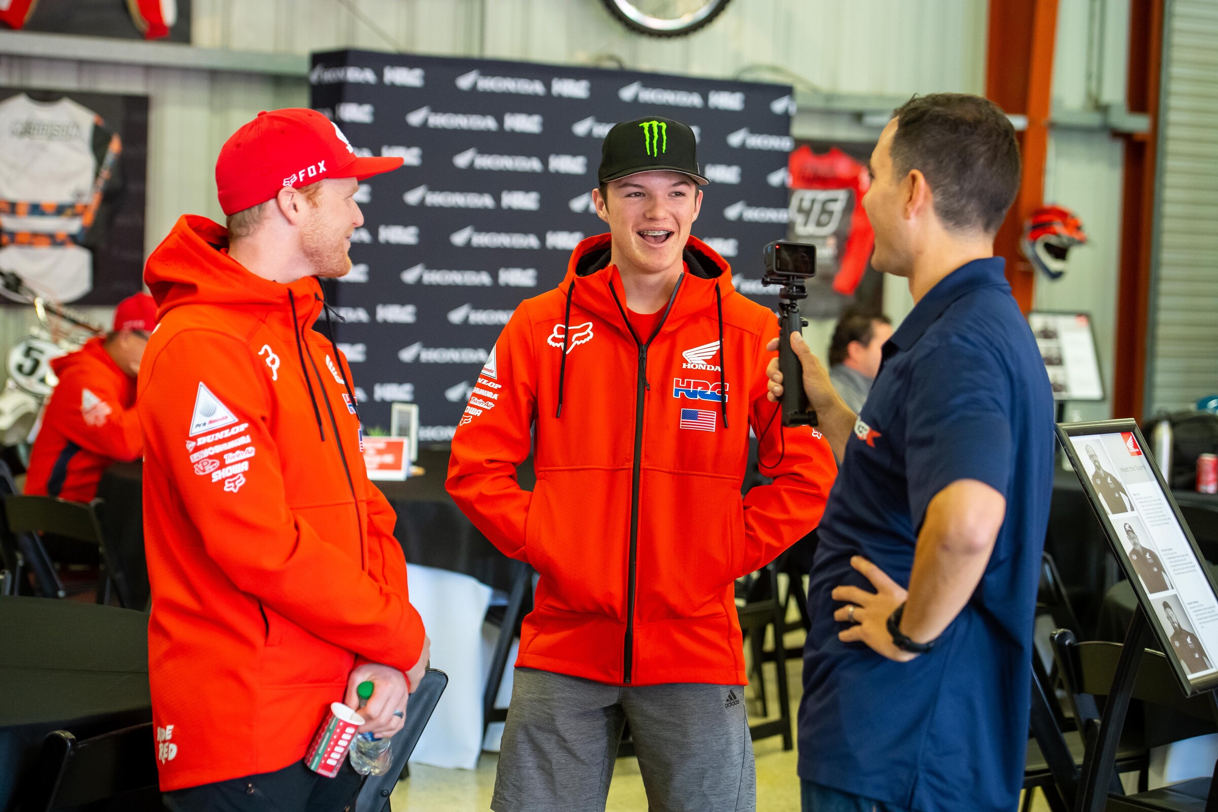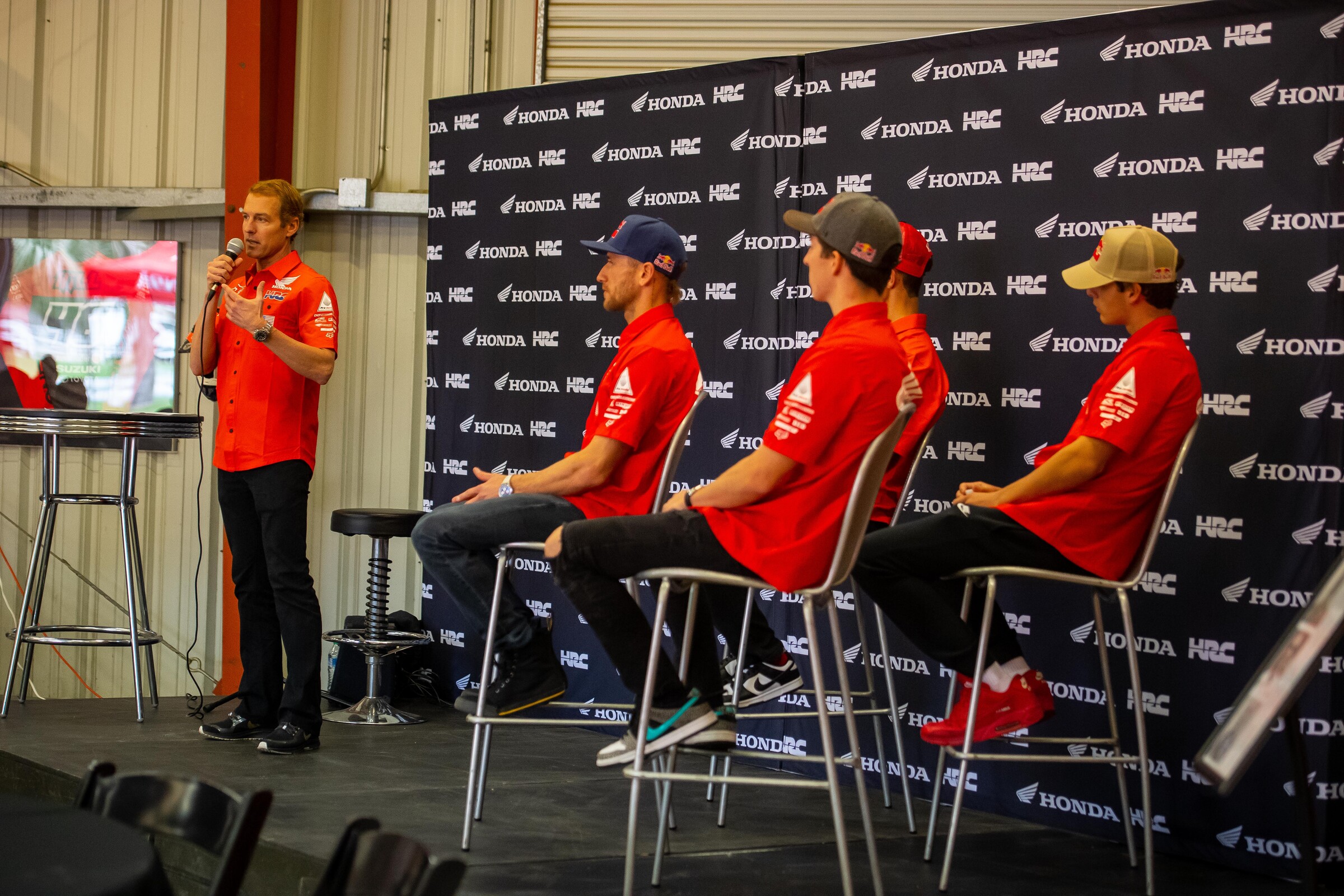 Team Honda HRC introduced their 2022 lineup of Ken Roczen, Chase Sexton, Jett Lawrence, and Hunter Lawrence yesterday at Blackmore Ranch in Murietta, California. There was lot of fun to be had with the team playing around on a small motocross track and flat track before sitting down and talking with us about expectations for 2022. Hear from all four riders one what they look forward to heading into the new year.