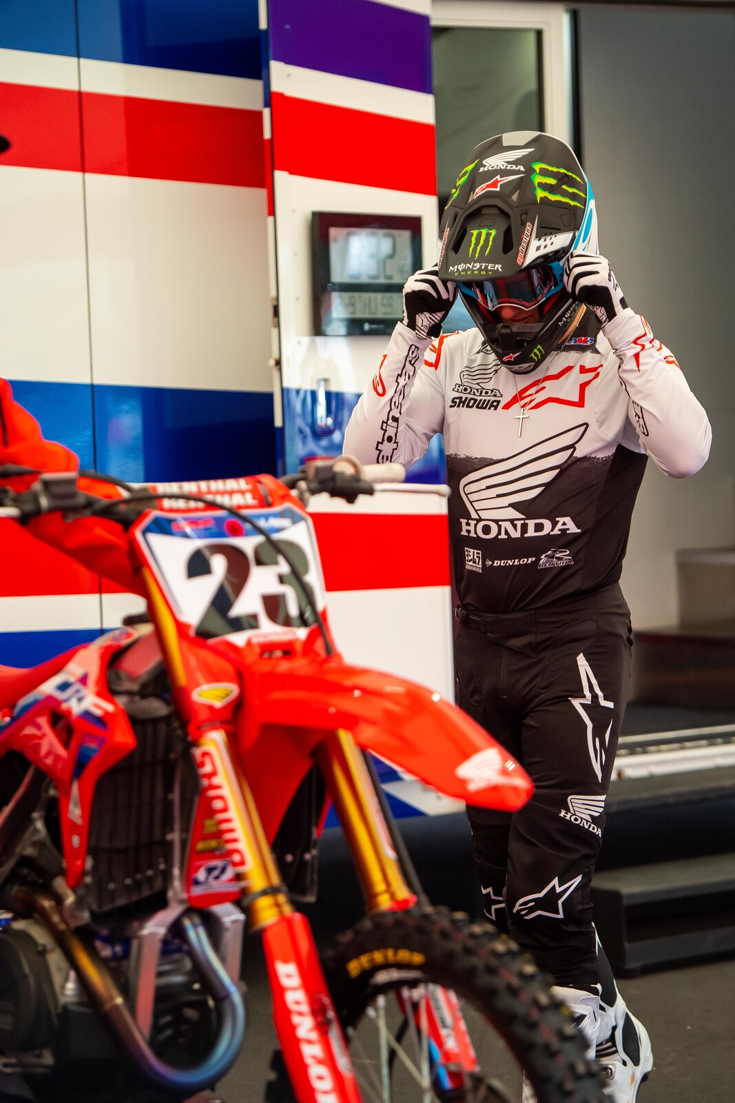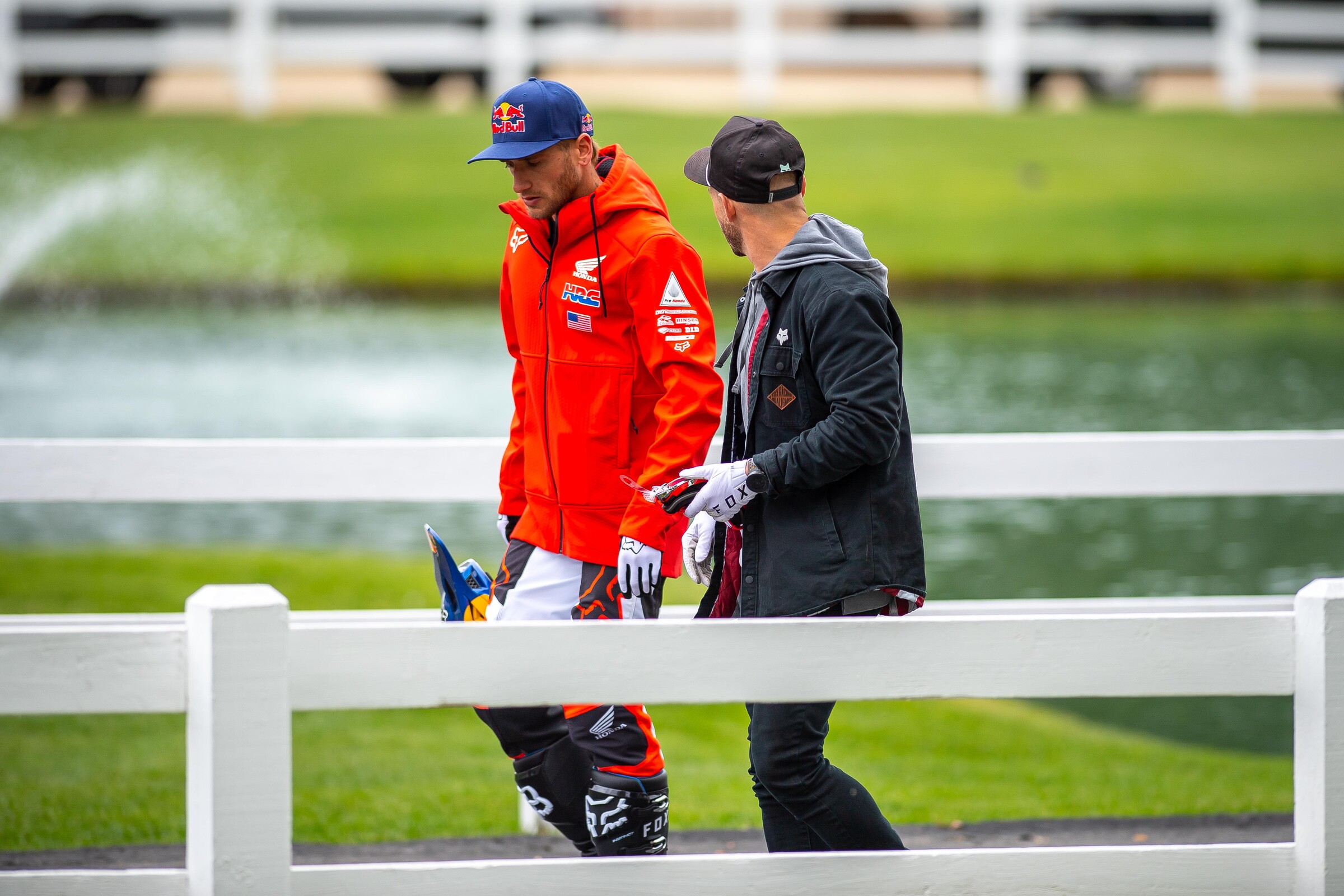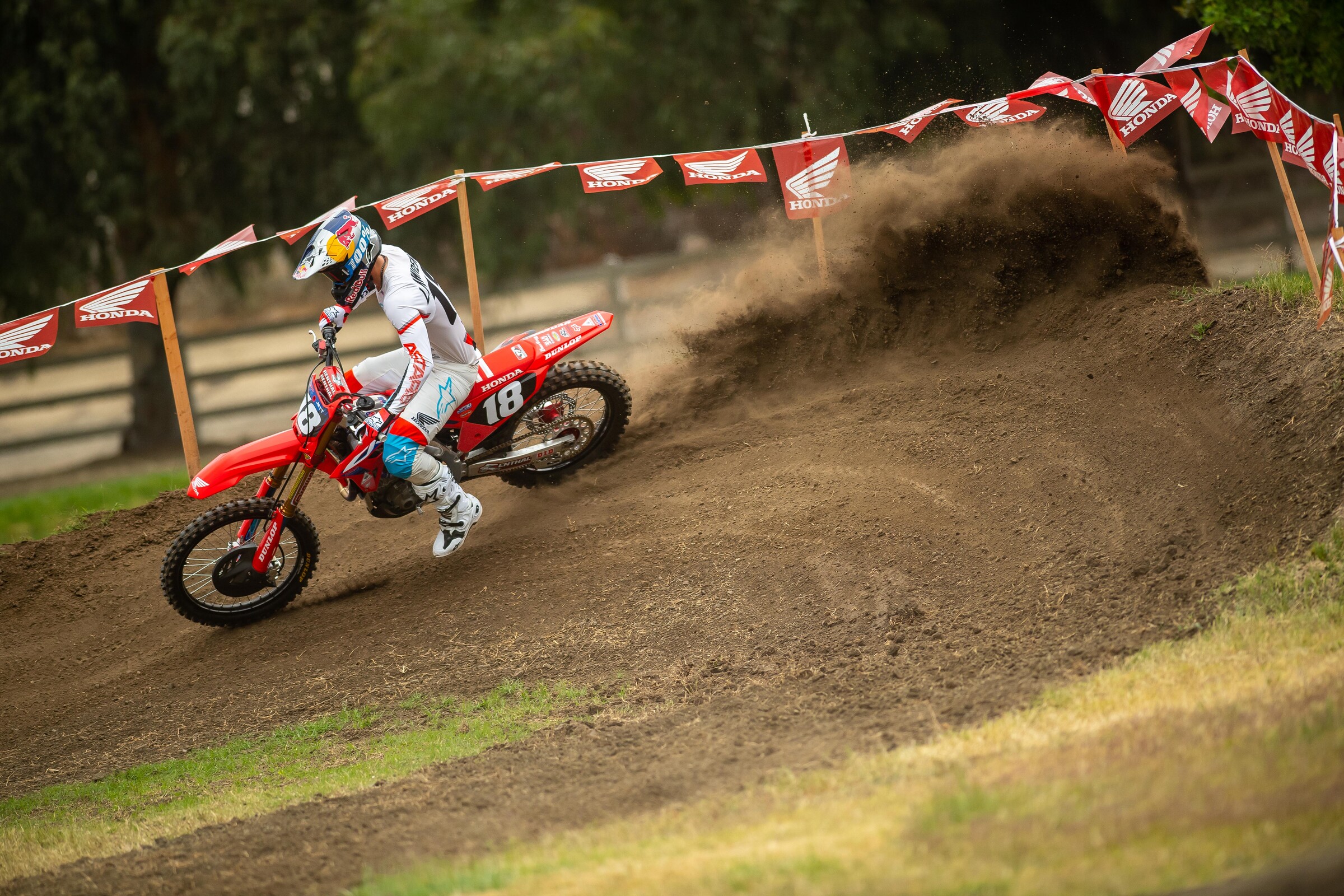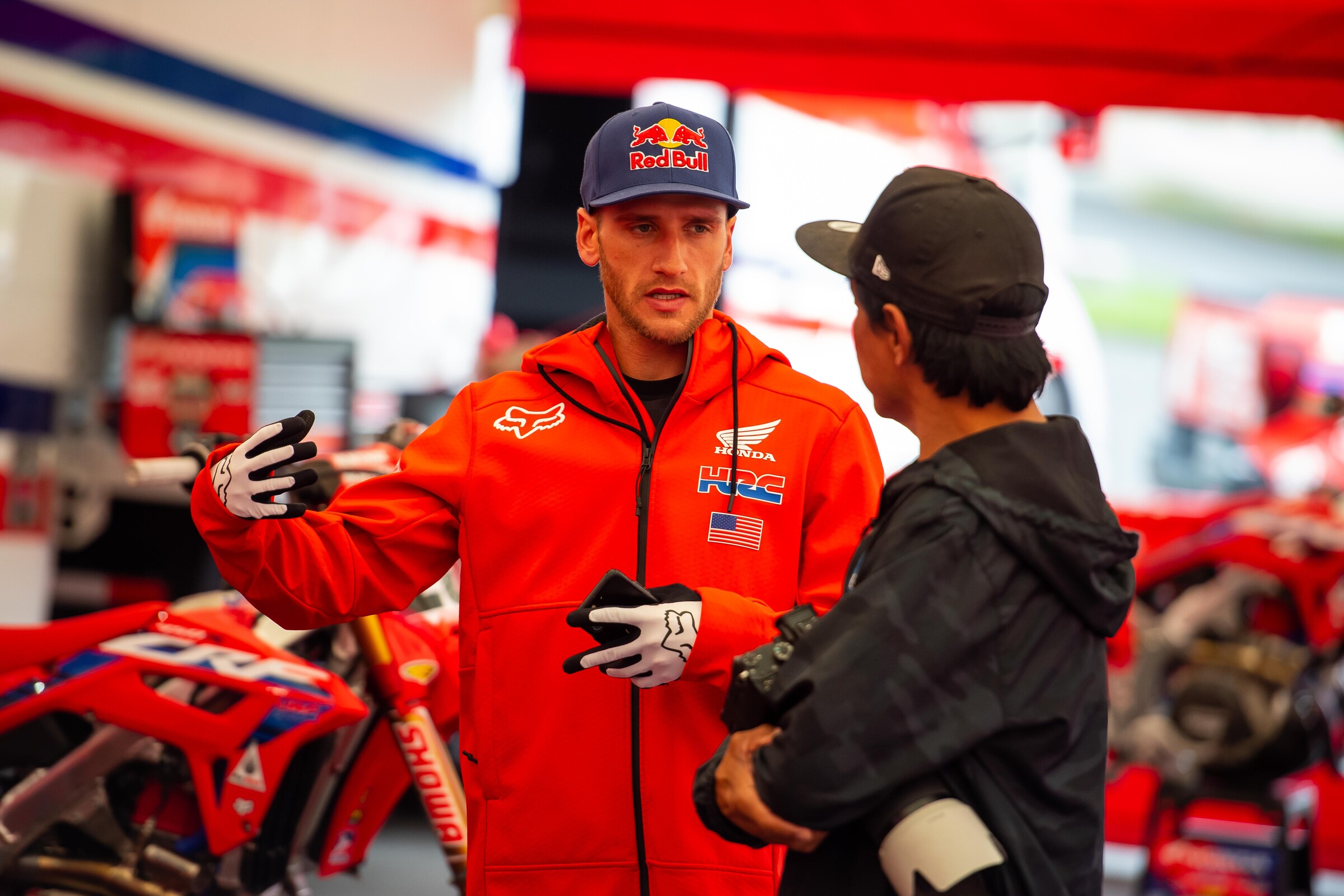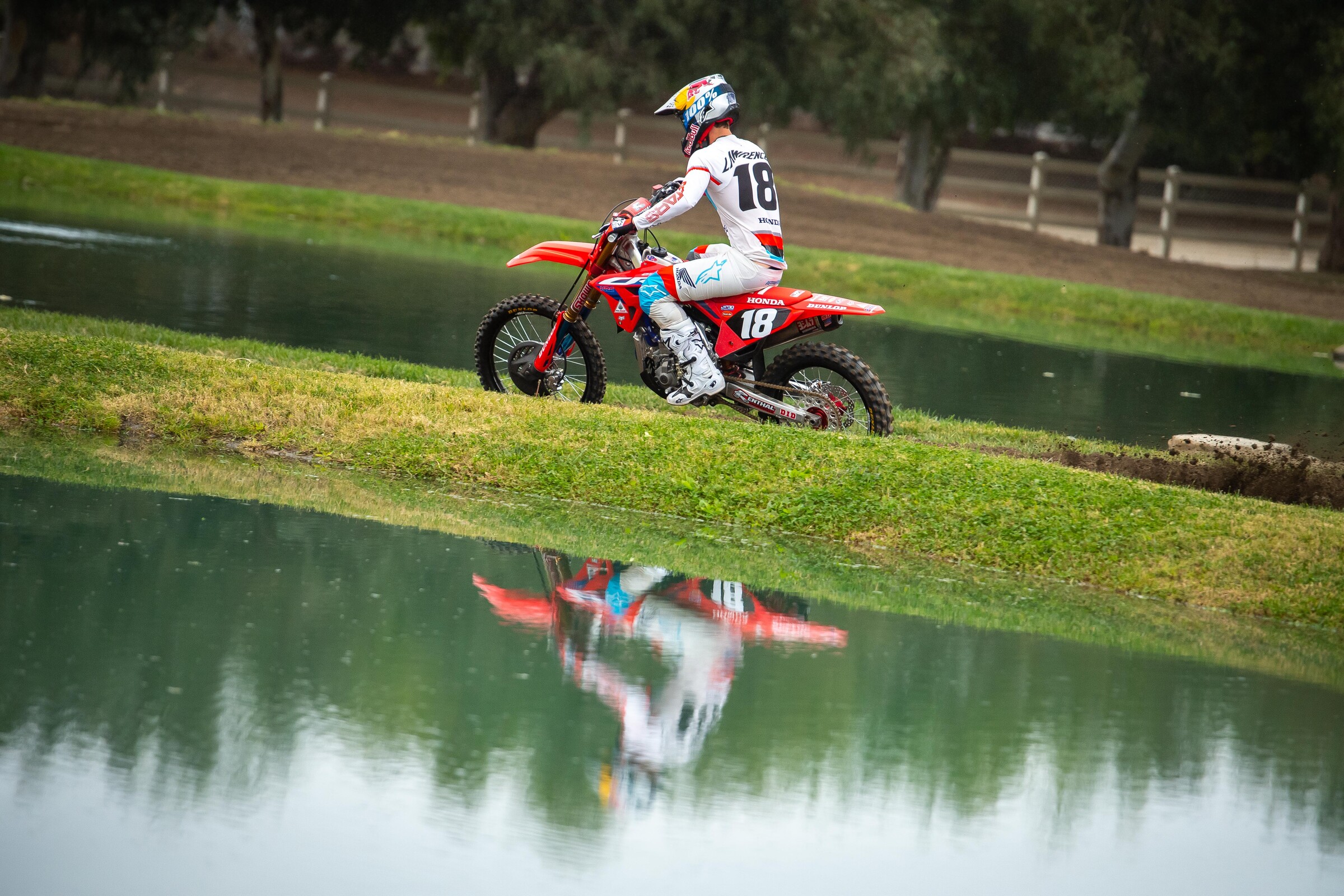 Team Honda HRC introduced their 2022 lineup of Ken Roczen, Chase Sexton, Jett Lawrence, and Hunter Lawrence yesterday at Blackmore Ranch in Murietta, California. There was lot of fun to be had with the team playing around on a small motocross track and flat track before sitting down and talking with us about expectations for 2022. Hear from all four riders one what they look forward to heading into the new year.