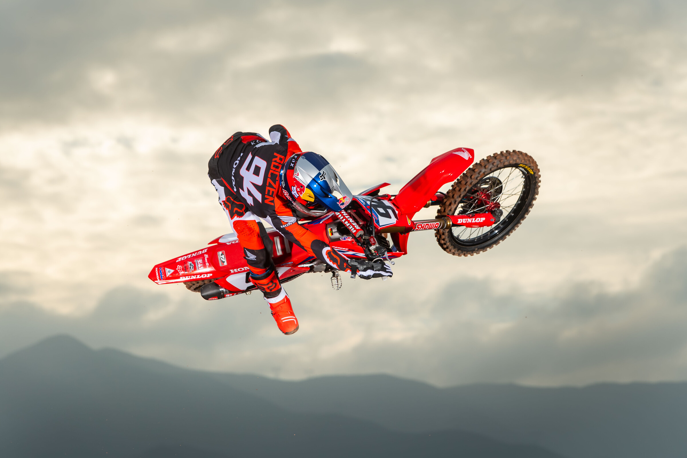 It was getting later in the afternoon on a cloudy day in early December at the Honda test track in Corona, California. Ken Roczen found a transition jump off the side of the finish line landing over to the next lane. Ken’s skill and the stormy weather makes for a cool shot.