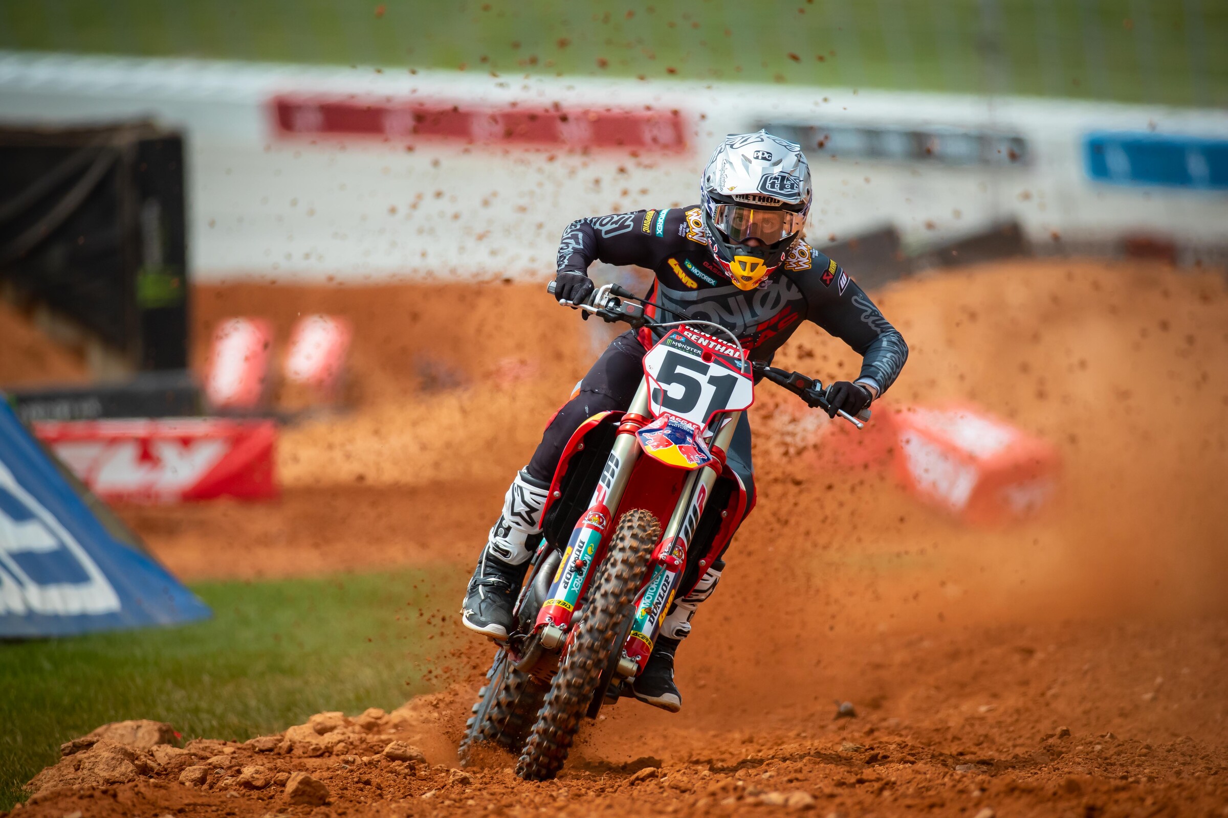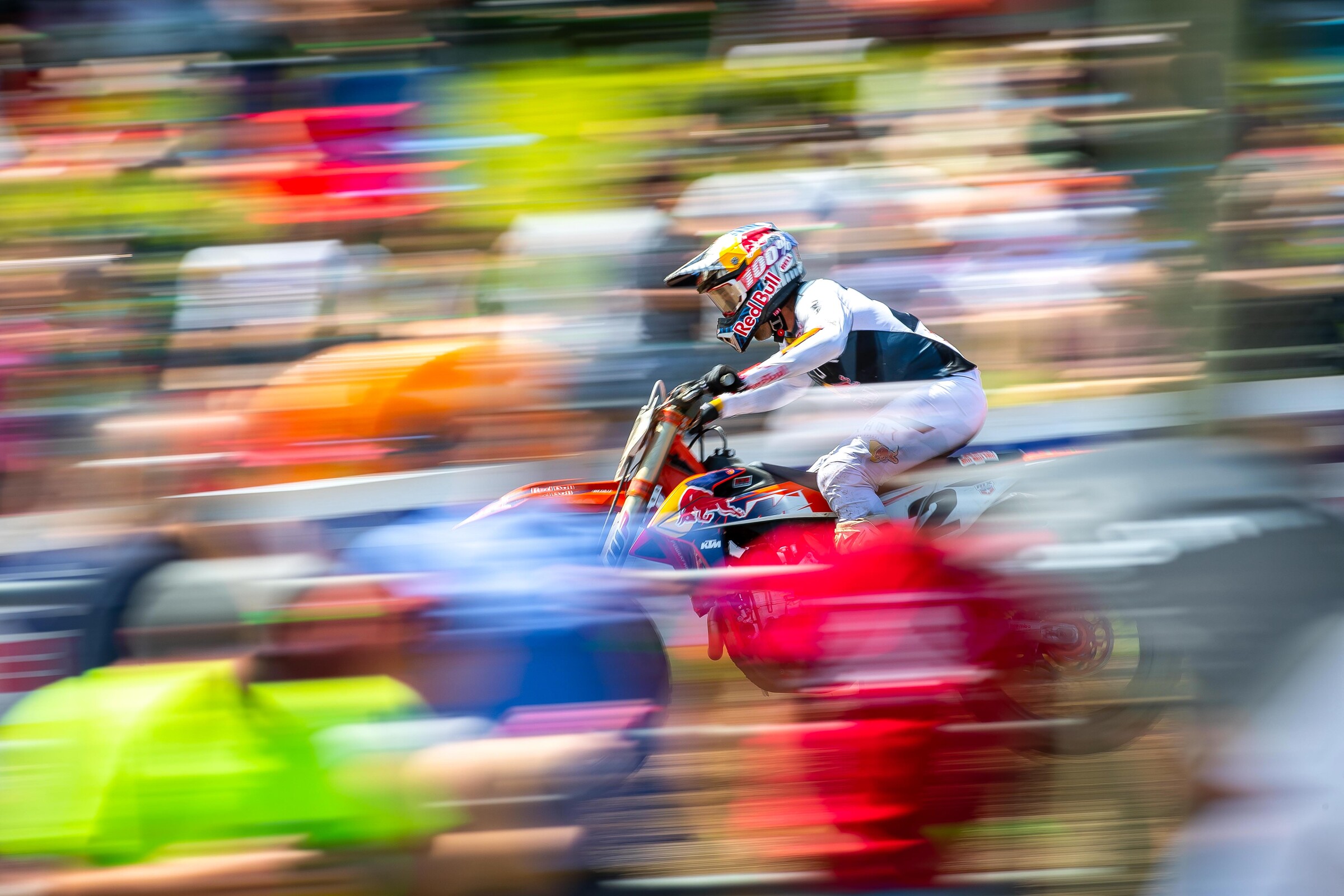 Sometimes you visualize a shot coming together and then it works out just how you envision it. This frame of Cooper Webb worked out sweet with a little foreground and background mixed with slowing down the shutter.