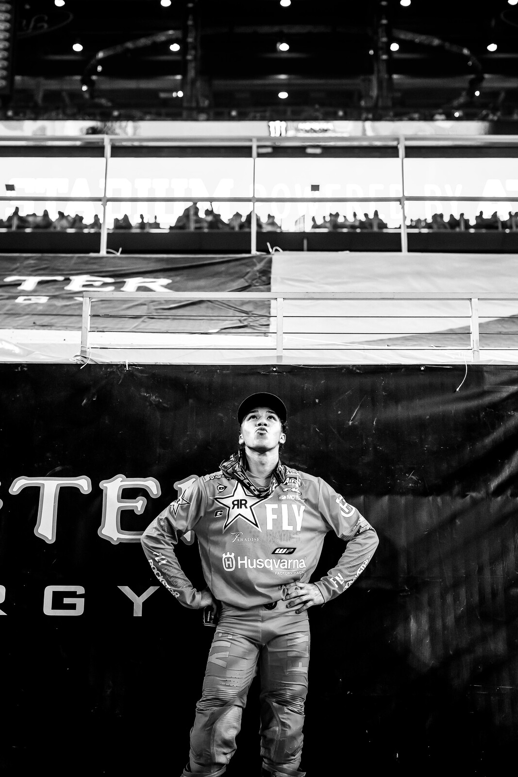 There’s nothing like capturing the rawness and emotion in our athletes as they achieve their dreams, and this one of Jalek Swoll is an image I loved the moment I shot it. Jalek is a great rider and awesome personality, and this first supercross podium was a big moment for him.