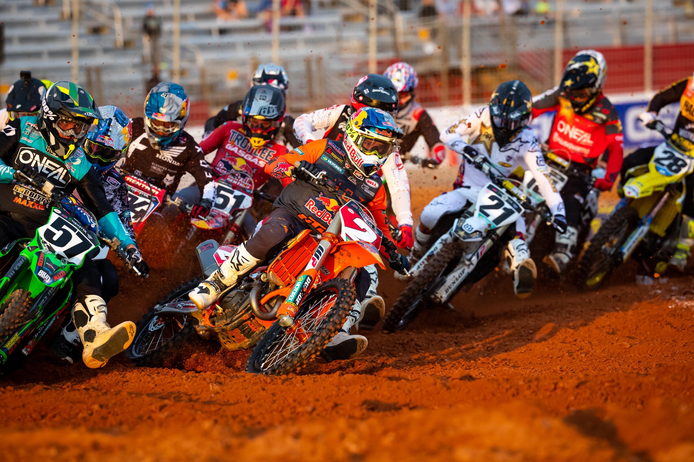 Atlanta’s hosting of three rounds this year gave us a few different opportunities to shoot in great sunset light. This shot of Cooper Webb leading the pack into turn one was a favorite from this venue.