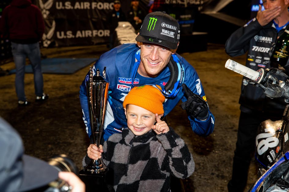 I mentioned earlier, it’s a bucket list. It’s something I dreamed of for a long time growing up around here. I’ve said it a couple times now, but it’s special. It’s something I wanted to check off for a while. I’ve had some decent rides at Anaheim, but I’ve had some very bad ones, too. To finally stand on that top step is special to me. I won the opener last year and held it for a few rounds, but this is different. I know what it’s going to take. I watched my teammate do it last year, so I know what I need to work on and be consistent. I said this before, but it’s going to be a fight to the end.