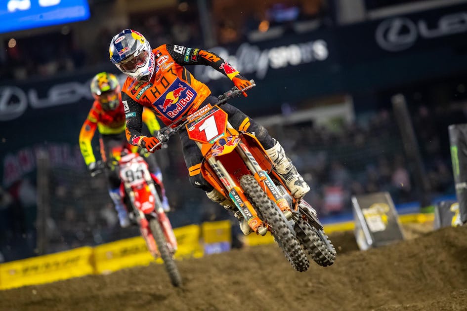 It’s starting to become about as reliable as death and taxes. Cooper Webb will not qualify well, but he will always rise to the occasion in the main event. Lots of riders looked fast at Anaheim. Webb stood eighth in the final qualification charts. In the main event he was just part of a thick pack of riders inside the top ten. Then, he started doing Cooper Webb things, picking the track apart, finding new lines and going to work. When the dust settled, Webb walked away from A1 with second place points. After the race, Webb spoke with the media in the press conference about that switch he flips when the lights come on.
