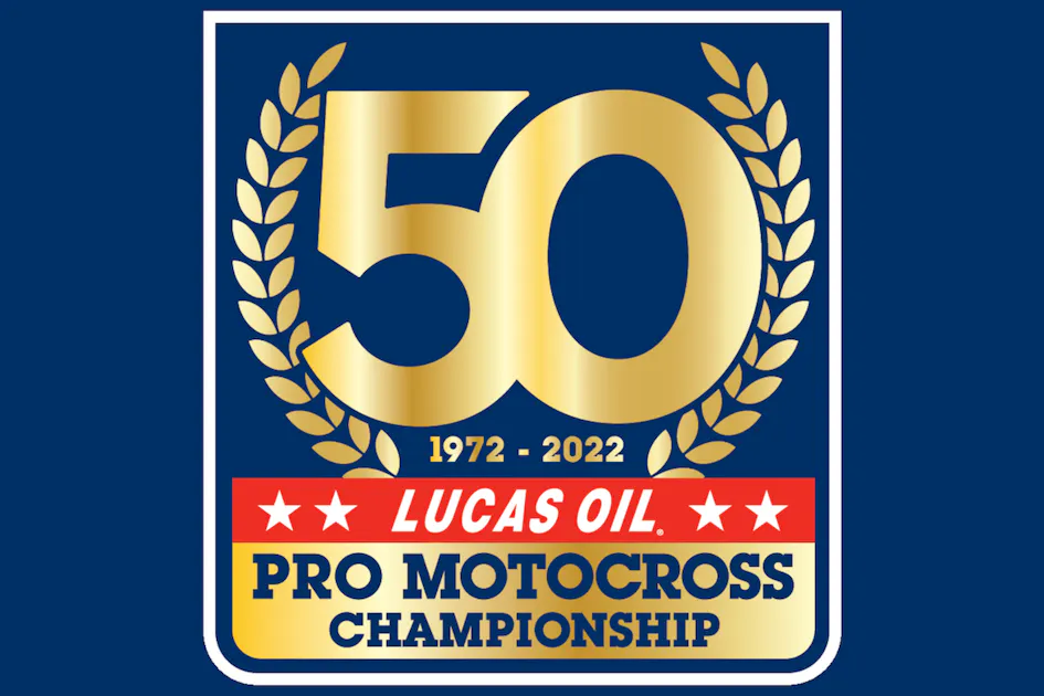 MORGANTOWN, West Virginia—With the turn of the new year, preparations are formally underway for the landmark 50th Anniversary of the Lucas Oil Pro Motocross Championship. In conjunction with each respective Nationals event organizer, the sanctioning body at AMA Pro Racing, and longtime series title sponsor Lucas Oil, MX Sports Pro Racing will celebrate the storied legacy of the world’s most prestigious off-road motorcycle racing series, beginning with the introduction of a new commemorative logo for the 2022 season.