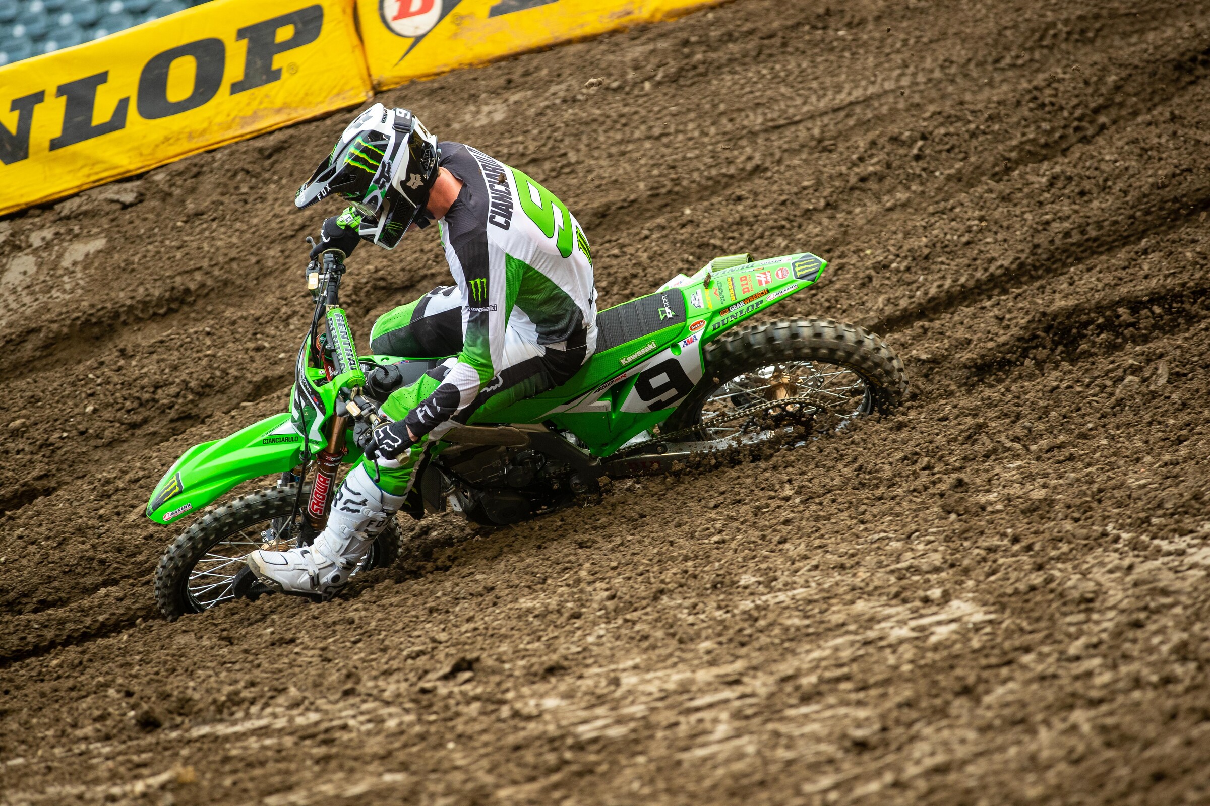 Adam Cianciarulo competed in his very first AMA Pro Racing event on June 22, 2013, at Budds Creek Motocross Park in Maryland. He placed 16th. Nine years, the 2019 Lucas Oil AMA Pro Motocross 250 National Championship, two career Pro Motocross Championship 450 wins, and an astonishing number of highs and lows later, the kid from Port Orange, Florida, who literally grew up before our eyes, is still fast at it. A member of the Monster Energy Kawasaki team, Cianciarulo was behind the starting gate inside overflowing Angel Stadium of Anaheim on Saturday night and despite the harsh reality of trying to bounce all the way back from a gnarly grade three separation of his AC joint, Cianciarulo went out and earned a hard fought 11th place finish on his #9 Monster Energy Kawasaki KX450SR Special Racer.