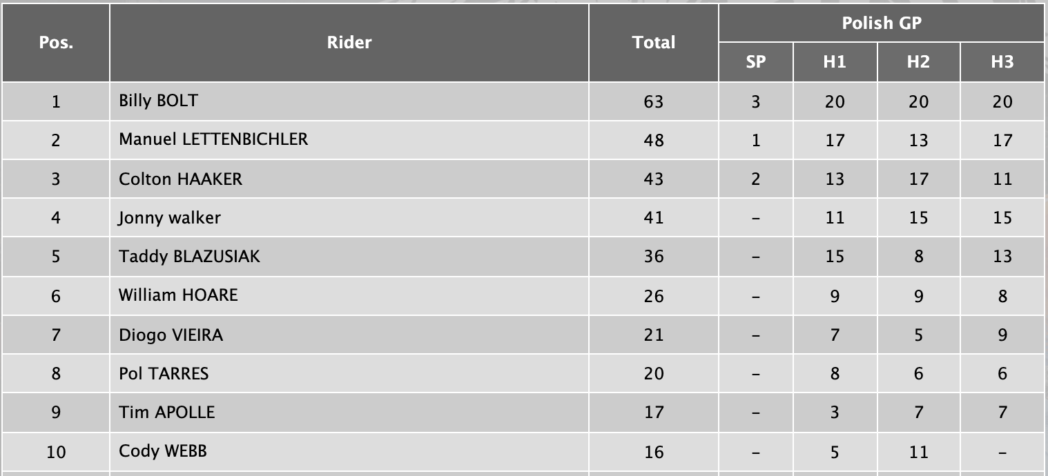 | Billy Bolt (Husqvarna) | FIM SuperEnduro World Championship | Prestige Class |