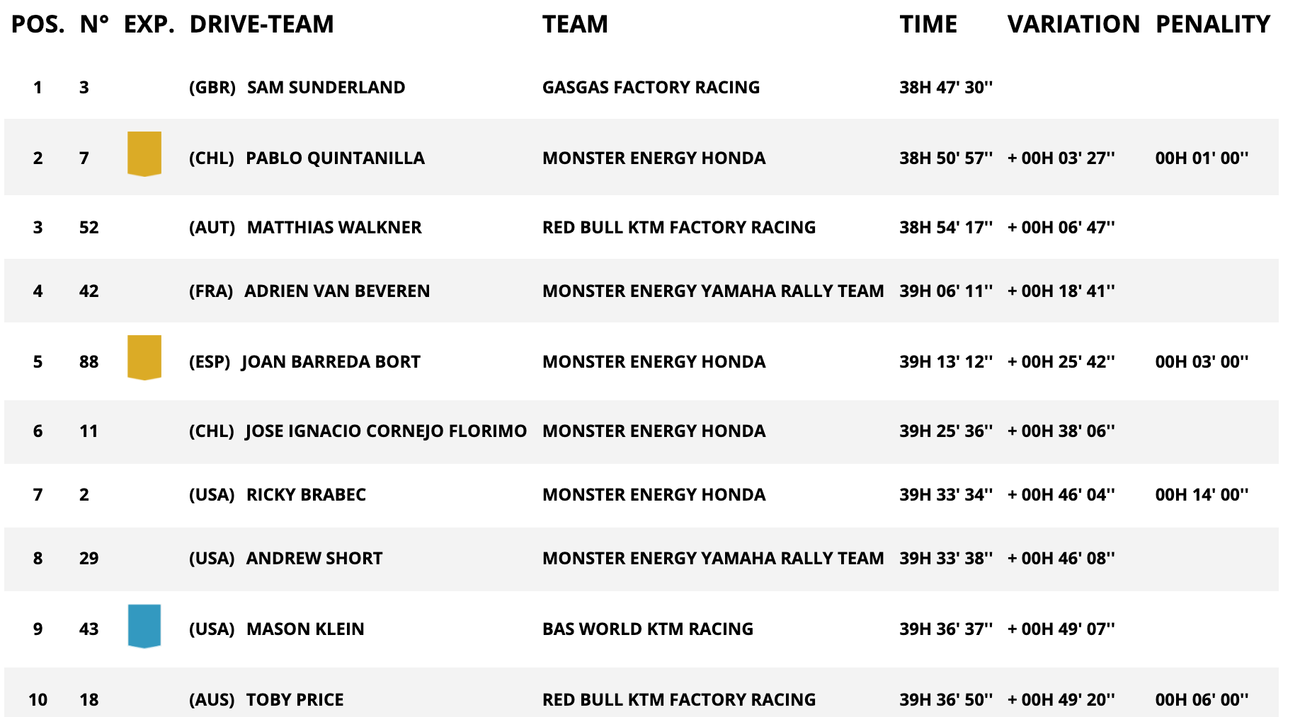 | Sam Sunderland (GasGas) | Dakar Rally | Bike |