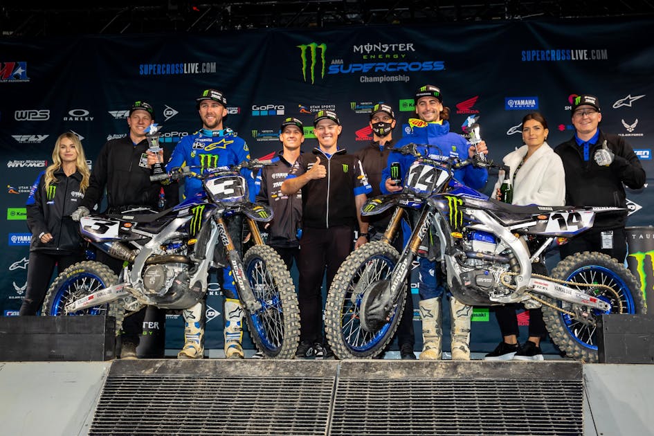 Dylan Ferrandis: Everything. I think the first one I just had the rear brake issue and crashed. From that, we worked on the bike especially on the start, tried to improve. Oakland was better again on the track. Was a big improvement but the starts were still bad. This weekend I think just better starts helped me a lot. We just showed what we are capable with Yamaha. We showed what we are capable on the track during the main event with a good start. We proved two bikes on the podium is what we can do. So, that was great. For sure, a lot of change on the bike, especially for the start. I think we were a little bit surprised how bad we were at A1 on the start, so we really tried a lot of stuff during the week after A1, after Oakland too. Tonight was way better for both Eli and myself. So that’s great, but we also know that we need to work even more to get consistent, good starts.