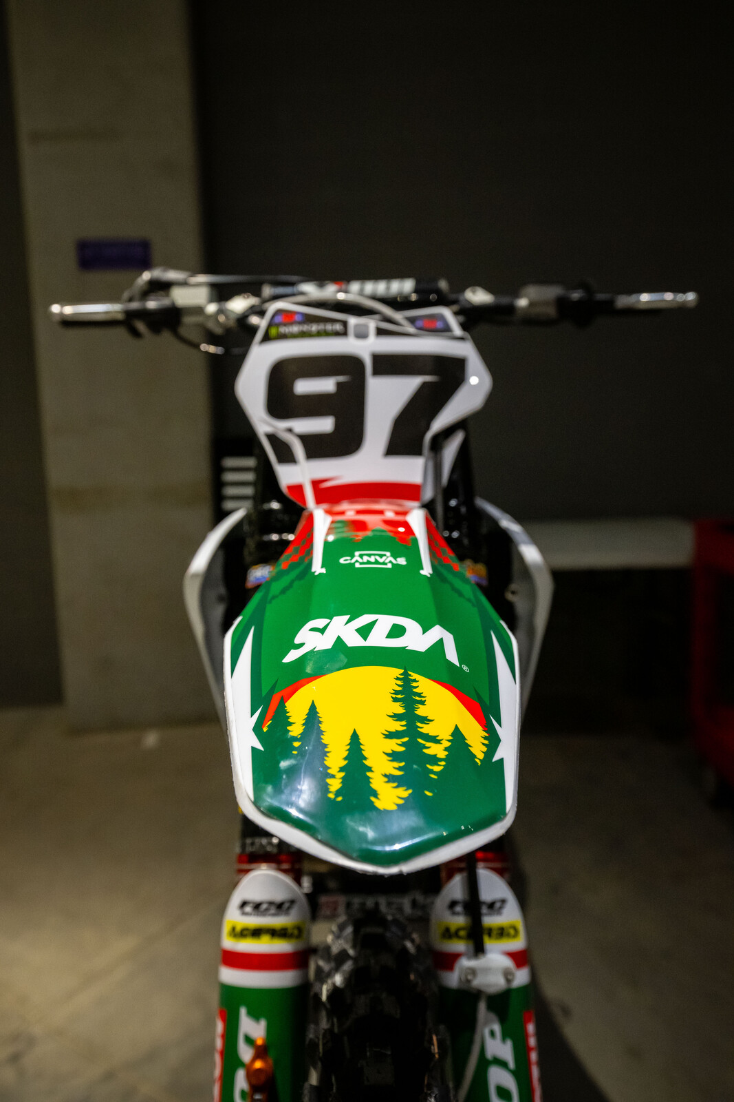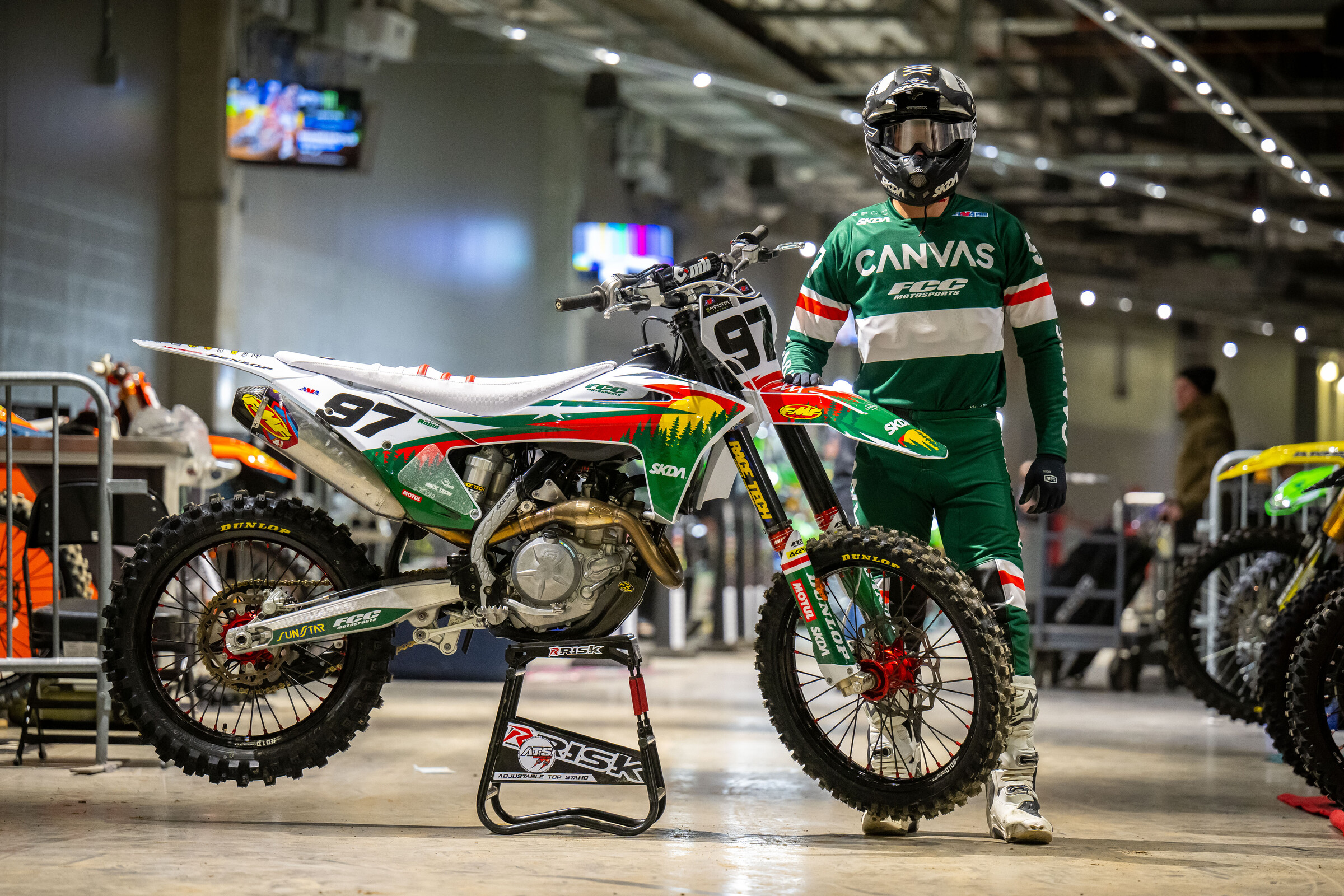 Jerry Robin is primarily racing in the 250SX West Region, but he lined up in Minnesota in the 450SX class and brought with him Minnesota Wild (NHL team) inspired gear.