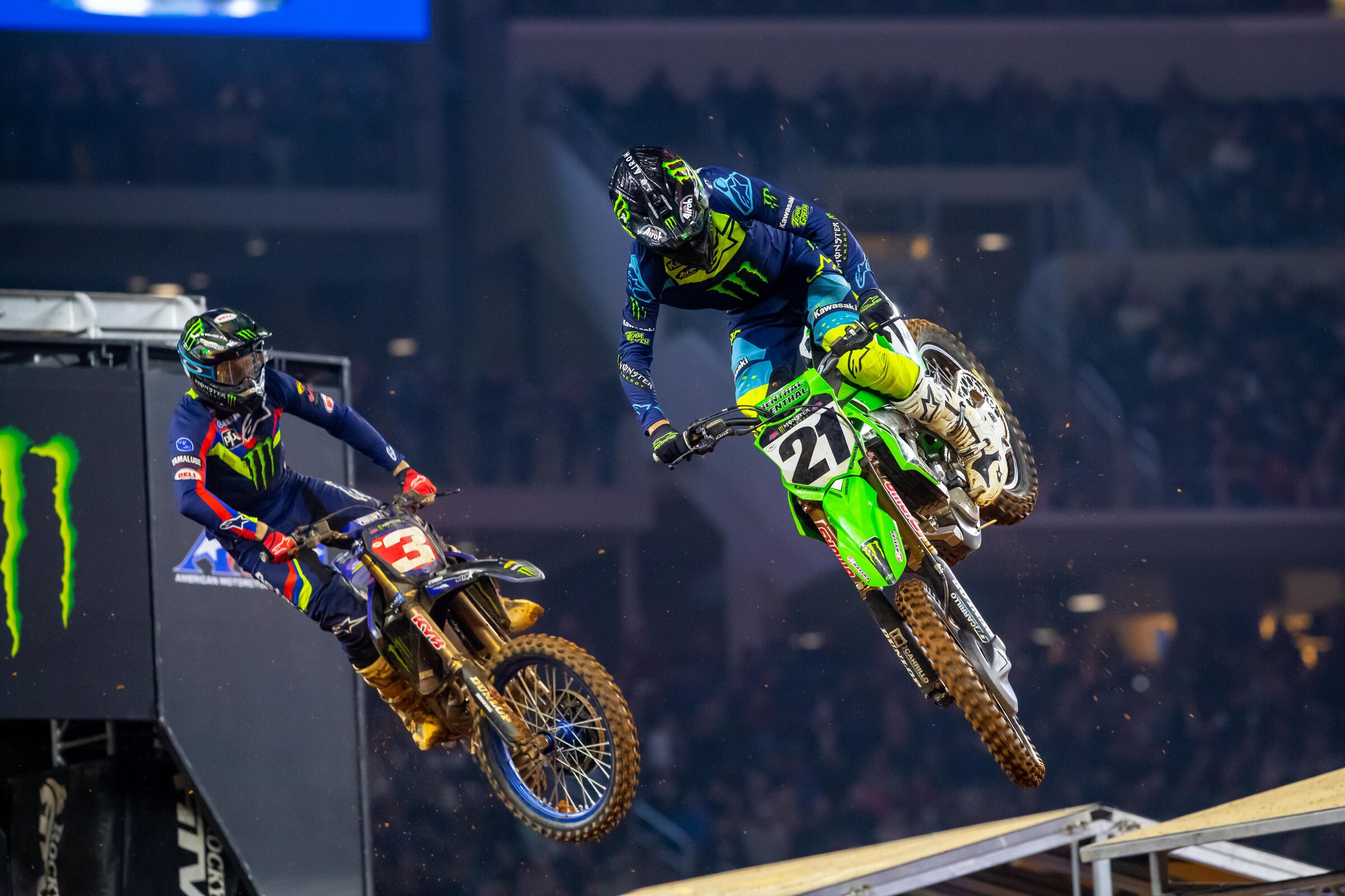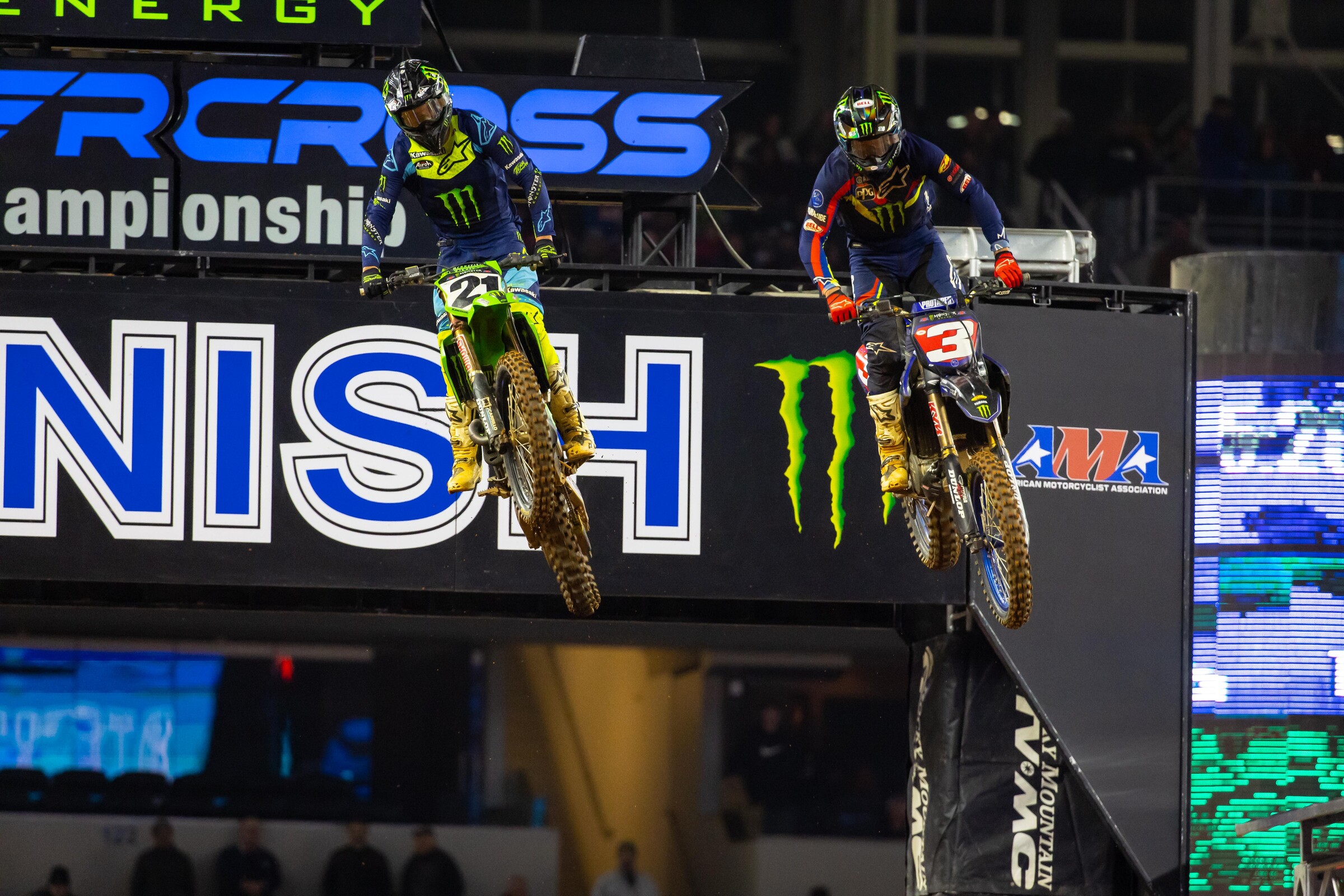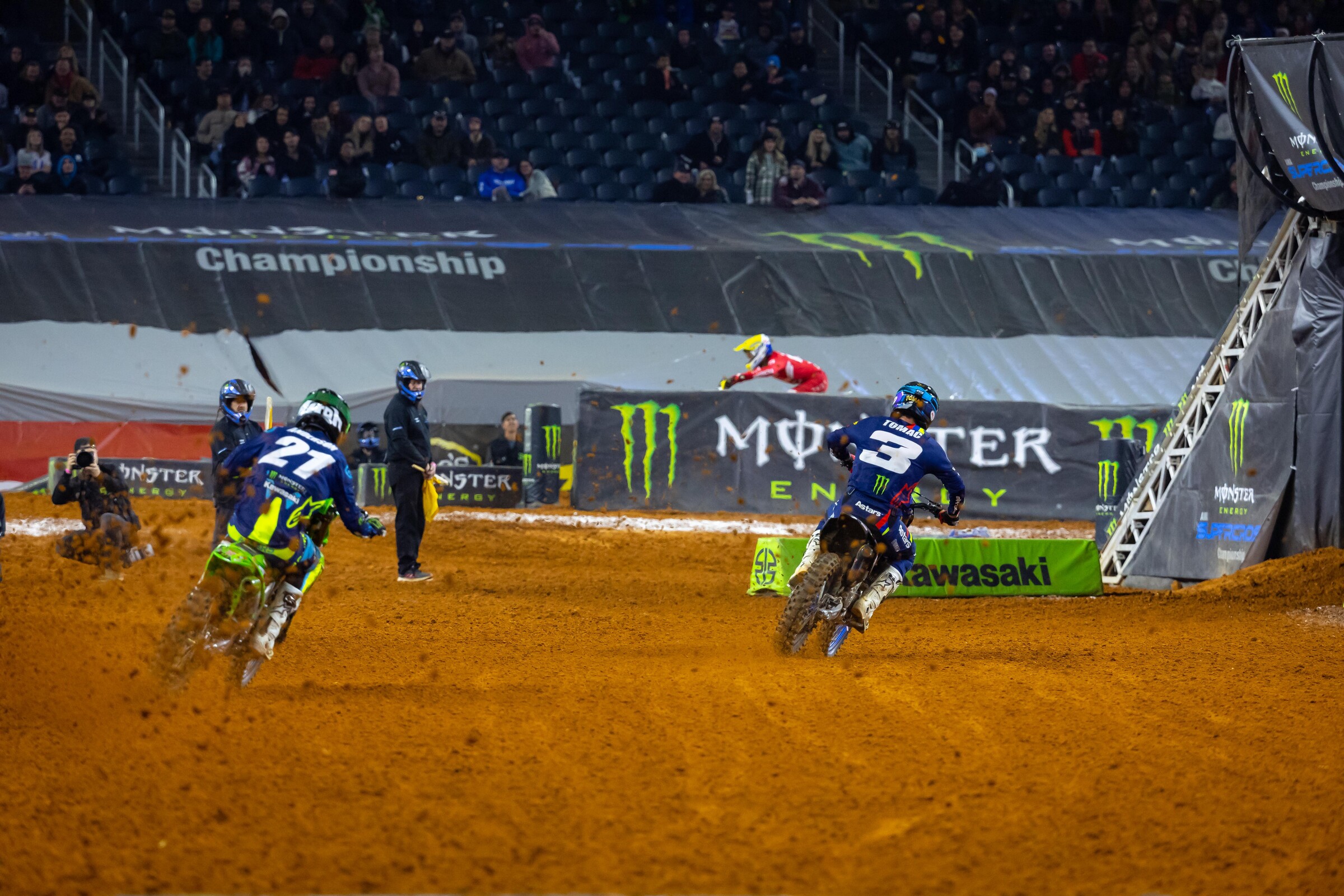 Jason Anderson: Yeah. I think for us right now, we’re riding really good. It’s hard for each of us to break away from each other. I feel like if he’s in front, it’s hard for him to break away from me and if I’m in front it's hard for me to break away from him. So, it just makes that race craft so important. Like he said, we went over the finish in one lap, I wanted to square him up but he read me like a book! [Laughs] So, it was hard for me to do it. Then you come in the other corner and he goes to the inside, because he thinks I’m going to dive in the inside [and] I’m just setting up outside. So, it’s just a game. But at the same time, we’re ripping while we’re doing it, so it’s pretty awesome. That’s what he fans need. I enjoy racing like that. It’s fun.