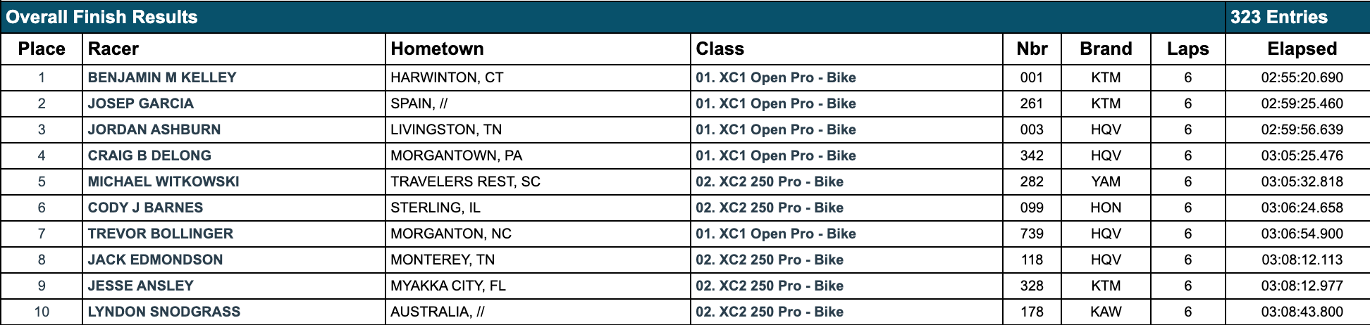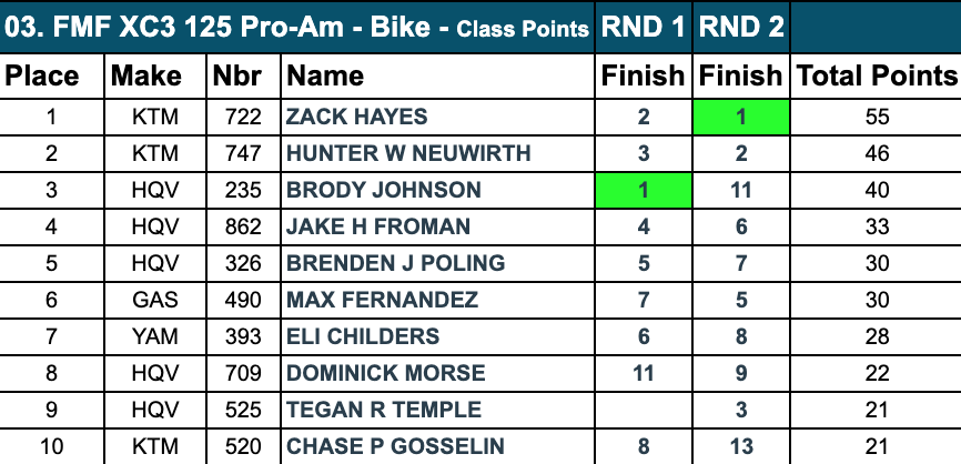 | Brody Johnson (Husqvarna) | GNCC | XC3 |