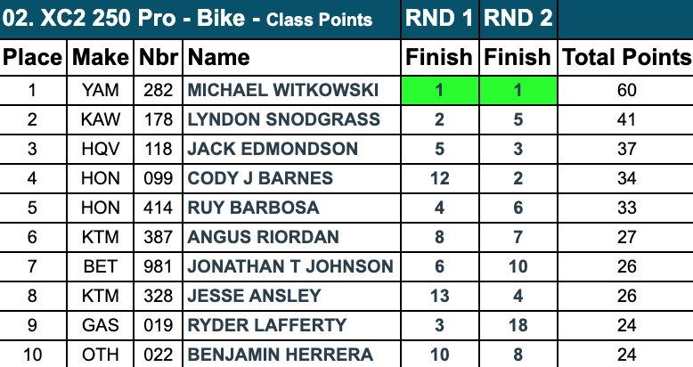 | Lyndon Snodgrass (Kawasaki) | GNCC | XC2 |