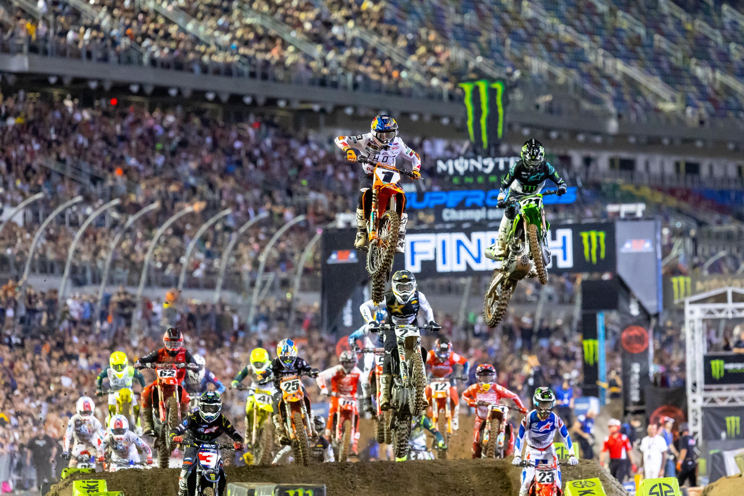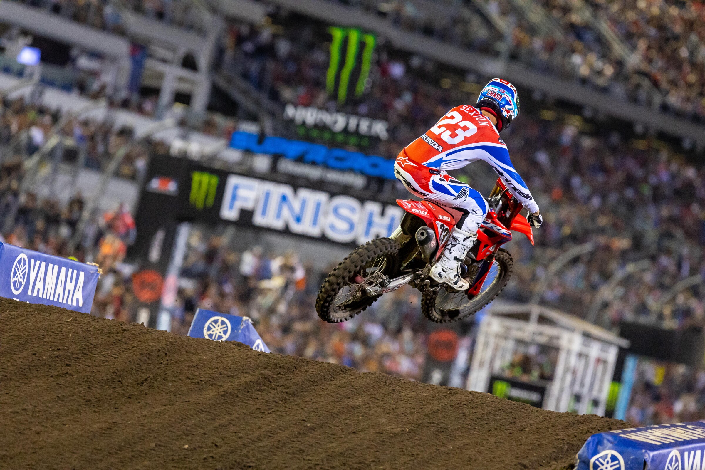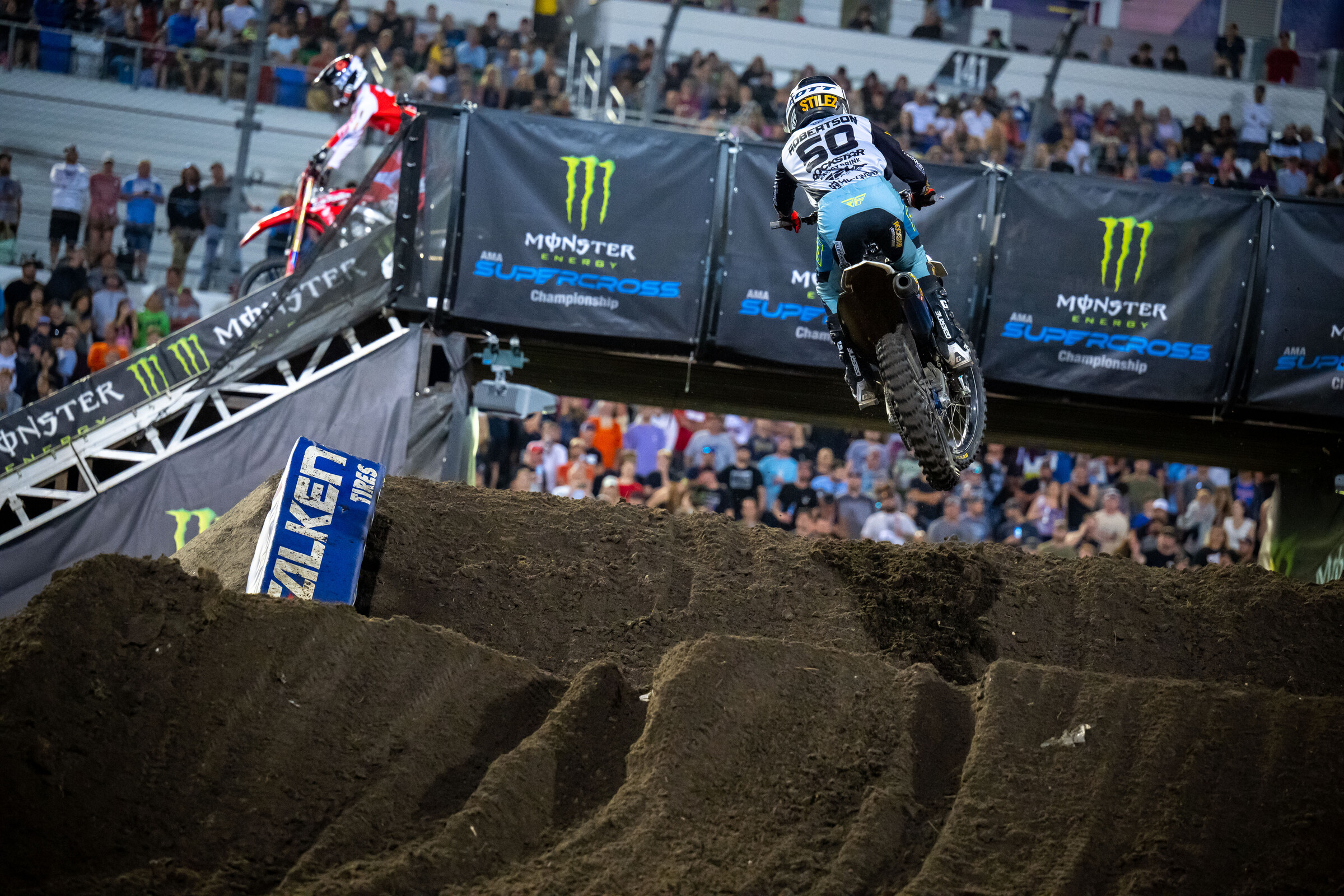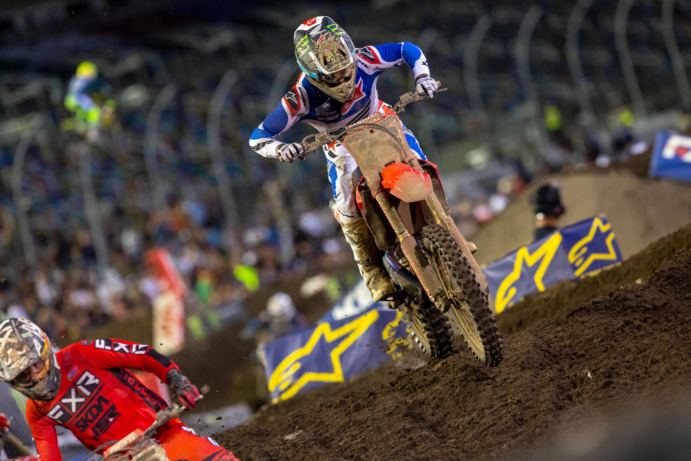 Definitely. Every supercross breaks down late in the race and that’s something I’ve had to adapt to from the little bike to the big bike. I feel like I’ve done a better job of that this year. This race in particular, the track is just really gnarly. Like Eli said, the jump before the tunnel, there was nothing there on the face and it was a big rut. It was a gnarly track. The finish line section was a pretty big rhythm and it had ruts all the way across. I felt like I had to adapt, and I didn’t adapt well enough. Just kind of go back to this week and try and get better, but we’re back to normal supercross next weekend. It's definitely a different animal, this track.