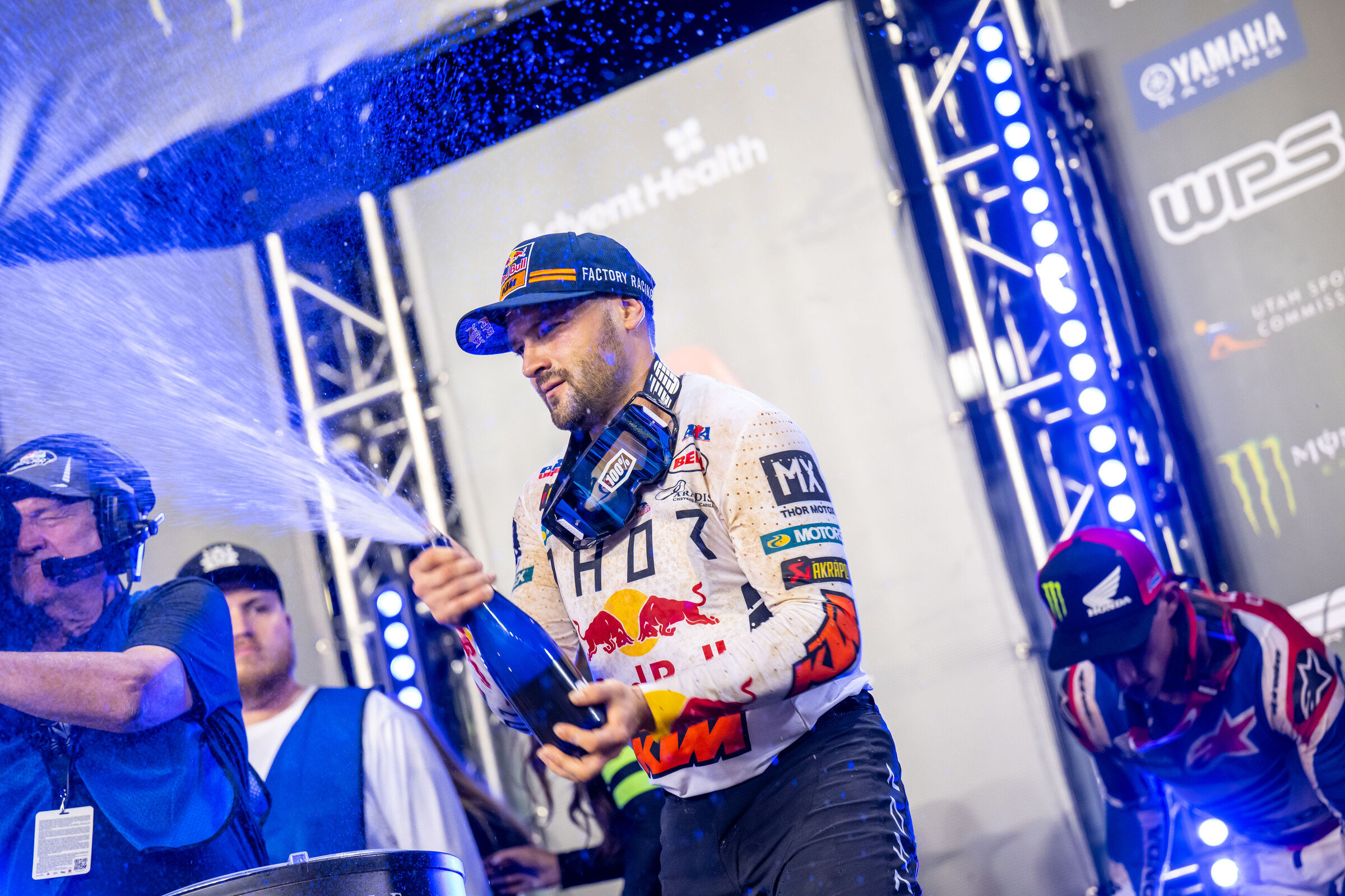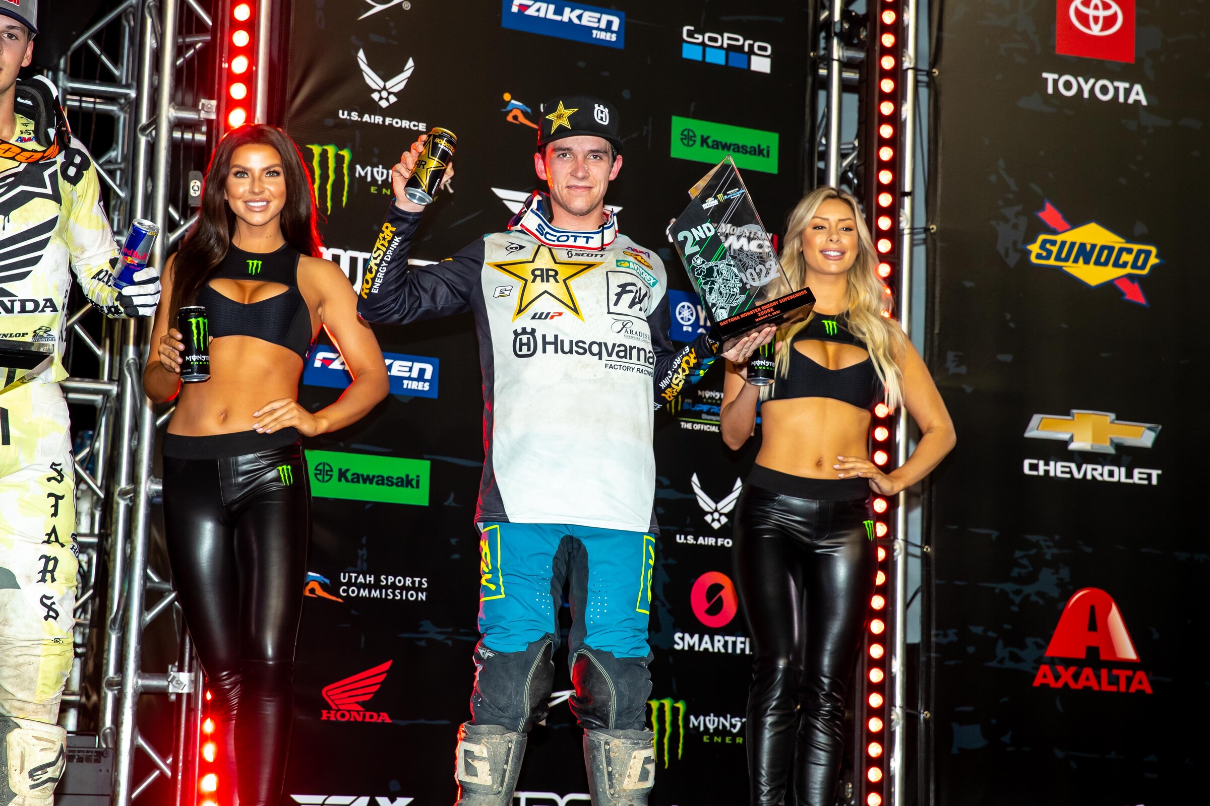Chase Sexton: Yeah. I had not really that great of a start, but kind of got my way to where I needed to be. Cooper was riding really well. I felt like I was going good at the beginning, and then as the track broke down and those guys kind of stayed the same, I got a little bit worse. Eli got by me and then [Justin] Barcia was behind me. in the middle of the race, I was riding a little bit better. I started to find a little bit of a flow and kind of started clicking off decent laps. I think I gapped myself a little bit from those guys. Like I said, they were riding really good. As the track got worse, I just wasn’t able to adapt to it. That’s where the gap came from. I’m happy to be back on the podium after a few rougher weeks. Excited to move on.