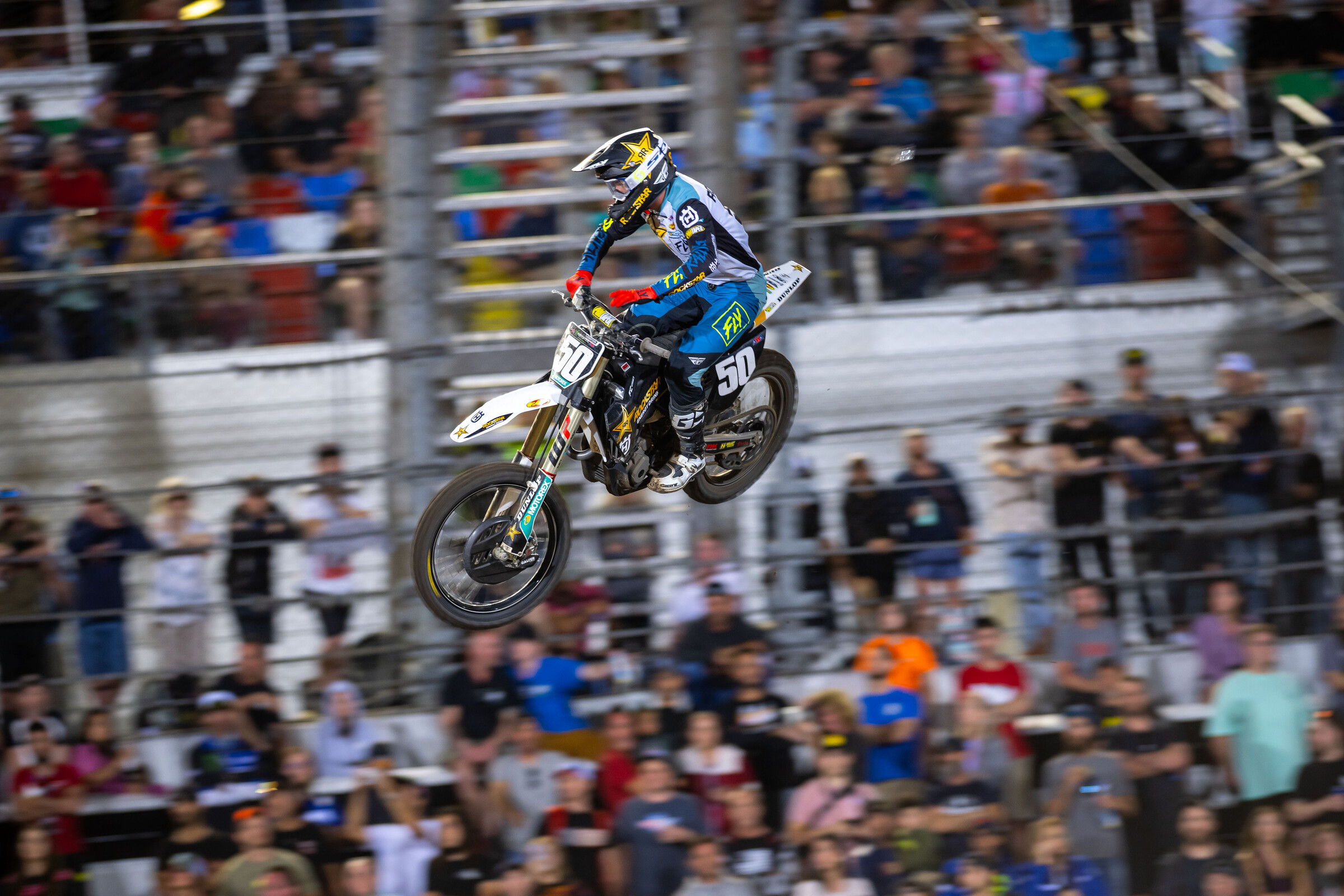 Yeah. The track conditions change a lot throughout the race night, and with all the bikes riding and stuff like that. It’s tough because through the day you’re just worried about doing one lap at a time really fast, and as you transition to racing, it’s putting laps together and some things that were maybe fast in the heat weren’t necessarily fast in the main. That’s racing typically at all the supercrosses, but I think especially here it changes a lot.