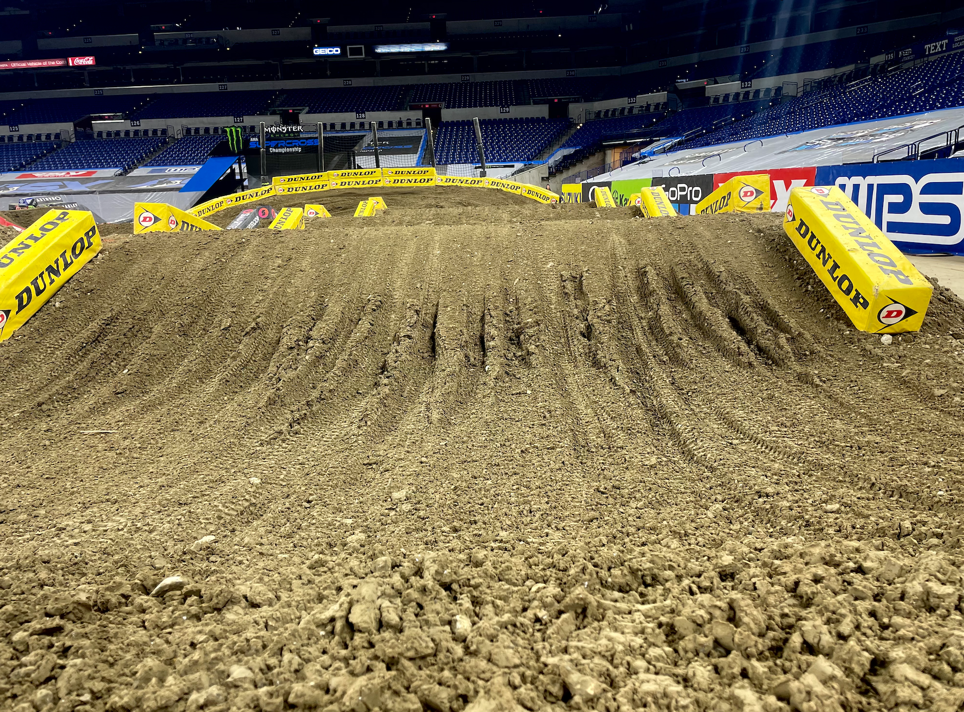 Our part-time contributor/part-time track crew/all-time free spirit Jordan Post (@postatrandom) is working down on the infield this weekend at Lucas Oil Stadium and sent this shot from this morning's very early press ride for a local news station. As you can saw, the dirt is pretty soft, so maybe this will help folks in choosing their PulpMX or MotoXDream360 fantasy team lineups for tomorrow night!