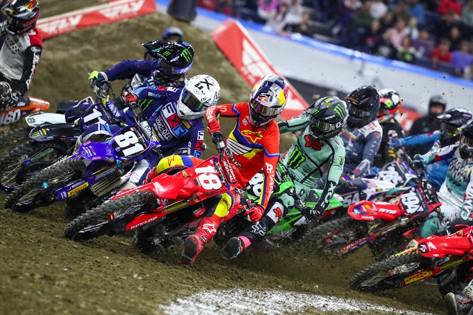Indianapolis would end up providing one of the greater main events of the season as seemingly all the top guys started out front. It was Justin Barcia who would grab the holeshot and lead the way early on with Jason Anderson and Malcolm Stewart right behind.