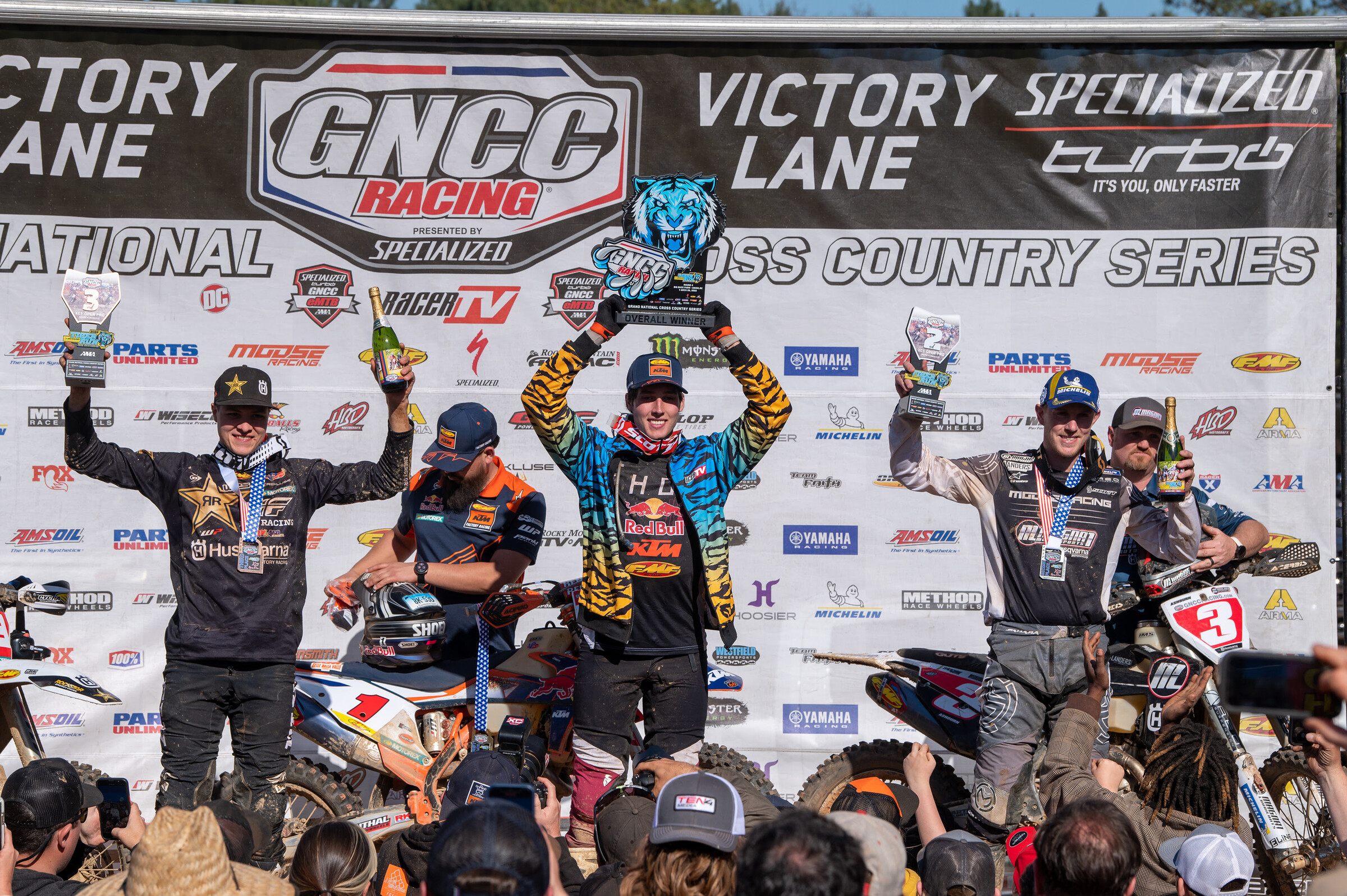 Phoenix Racing’s Ruy Barbosa battled back-and-forth from second to third for the majority of the race, but as he continued to push on, he would hold onto second for the last three laps of the three-hour race. Barbosa would come through to earn second in the XC2 250 Pro class, while RPM/KTM Racing’s Angus Riordan made his way from the back of the pack to land his first XC2 and GNCC podium ever.