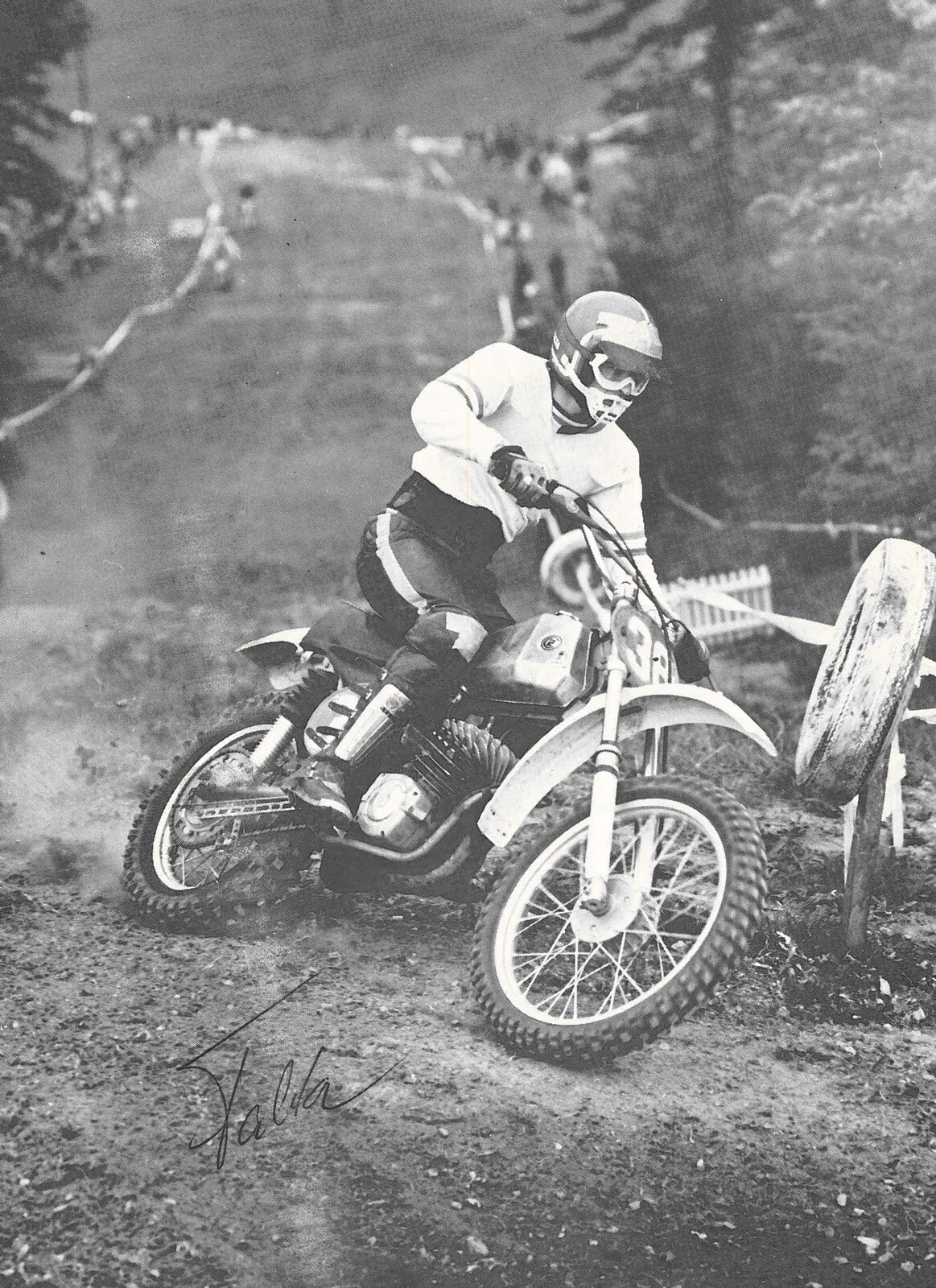 On a personal level, Jaroslav Falta was one of my heroes growing up, along with Heikki Mikkola and Marty Smith. Of course I could only follow him through the pages of my dad’s weekly Cycle News, as well as Motocross Action, Popular Cycling, Modern Cycle, Dirt Bike, and whatever else I could get my hands on. He was a mysterious underdog, battling the Russians and the Belgians and the Japanese bikes on that antique CZ of his. But I did get to see him race exactly one time. It was the summer of 1974, and my dad loaded up the family kidnapper van and drove us all to Lexington, Ohio, to see the Inter-Am race there. Falta was there, along with his CZ teammate Zdenek Velky, but they were separated by everyone in the main pit area as the “security detail” that used to follow any Eastern Bloc athletes to events to keep them from defecting. It was impossible to get close enough to my hero to ask for an autograph, which seemed almost important to this little kid as seeing him actually race.