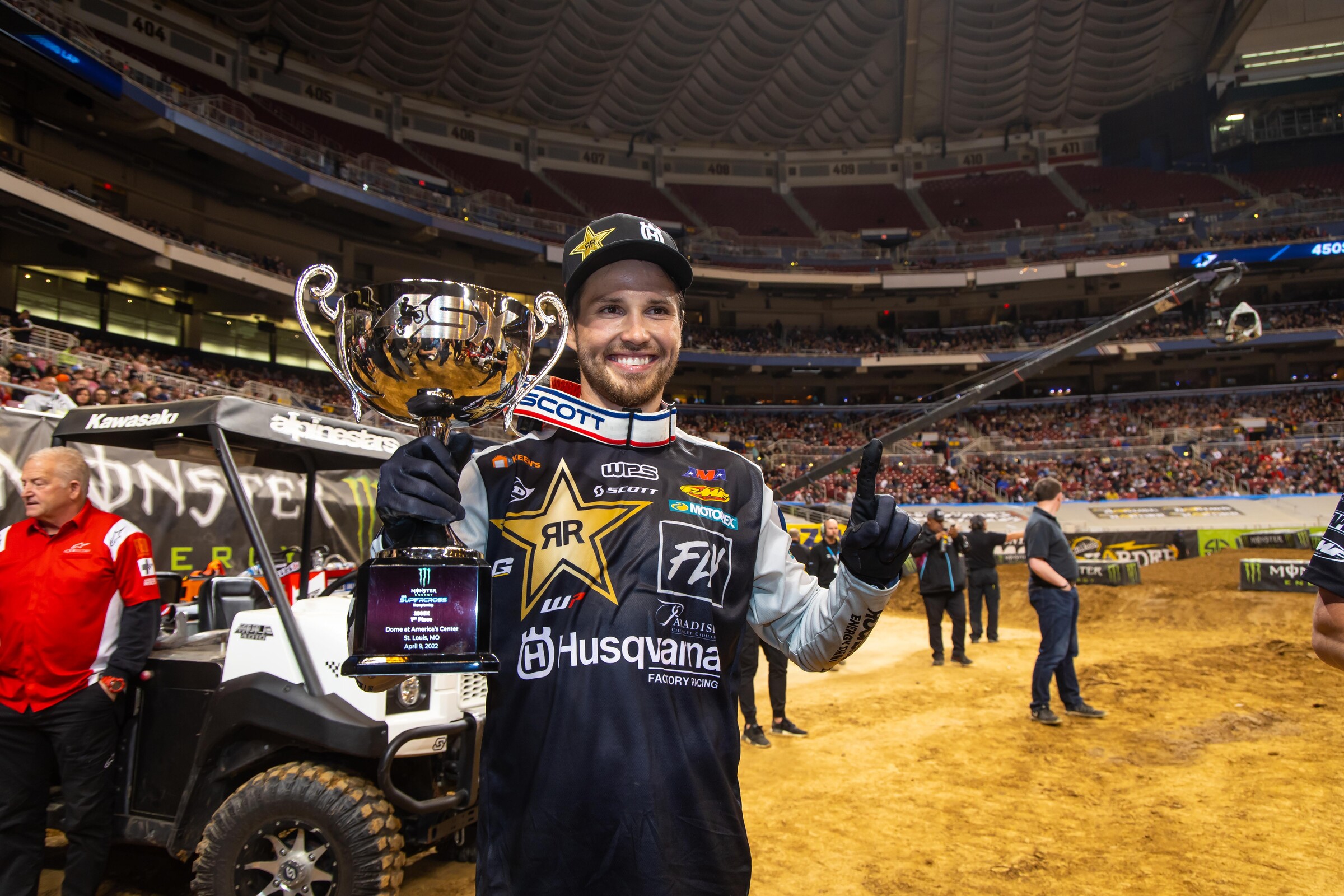We’re all expected to win whenever we have these factory rides. It’s kind of been my whole career. A lot is expected from me. I work as hard as I can. You can tell I want to win every time I’m out there, and sometimes I try almost too hard and it does bite me. So, it’s not a lack of effort or anything like that. Just like I said, putting myself in the right situations and being able to capitalize on mistakes that other people have, and people capitalize on my mistakes quite a bit. It was nice to get one tonight. For outdoors, I honestly haven’t even rode outdoors yet on this new bike, but we have a lot of positives already. So, I’m looking forward to it. We’re on outdoors this week. I’m excited.