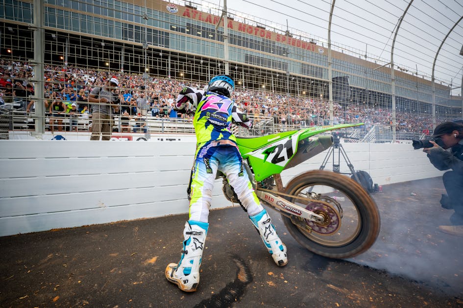When Chase Sexton tipped over early in the main event at the 14th round at Atlanta Motor Speedway, Anderson quickly inherited the lead and took off. He led the final 13 laps of the main event to take his fourth win of 2022 and his 11th career 450SX main event win. While Eli Tomac, Sexton, and Cooper Webb, respectively, would come through the finish line within seven seconds of Anderson, the #21 was not contested for the win. Unfortunately for Anderson, the win might have been too little too late as Tomac leaves round 14 with a 53-point lead with only 78 points available in the final three rounds. After the race, all three podium finishers talked to the media in the post-race press conference.