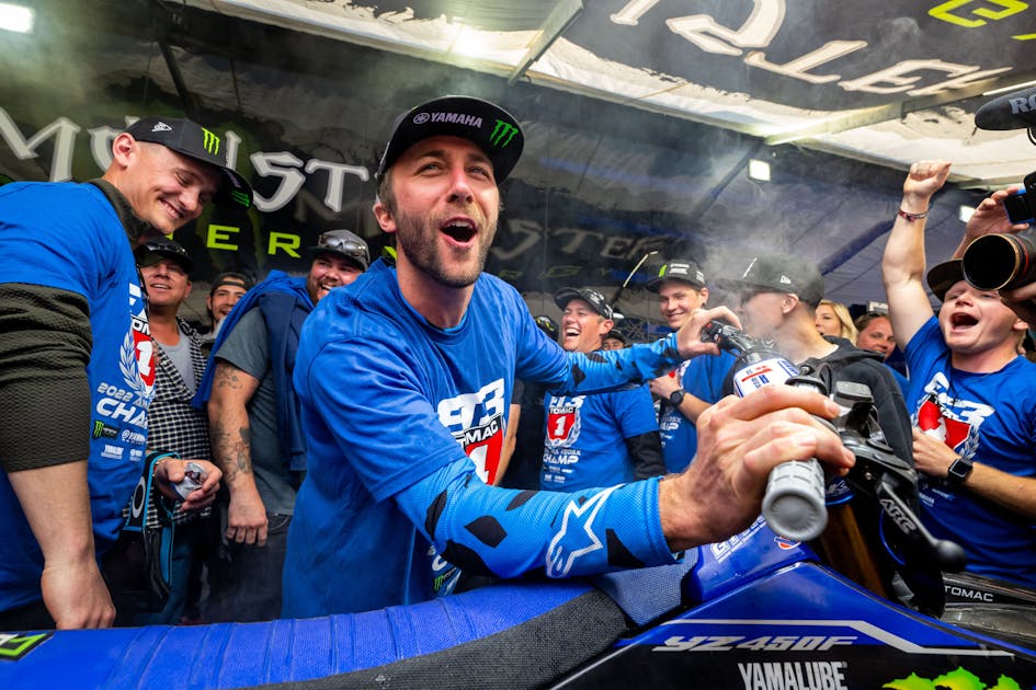 Eli Tomac and his big risk and switch to Monster Energy Yamaha Star Racing has paid off. He's Monster Energy AMA Supercross Champion for a second time. After the race Tomac revealed he had "jacked" his knee and had to struggle through Atlanta and Foxborough to get it done, and even didn't have the stuff to win his home race in Denver. Tomac doesn't usually reveal this much info, but championship celebrations have a way of leading to full disclosure. Perhaps Eli staying out of the drama has helped extend his career?
