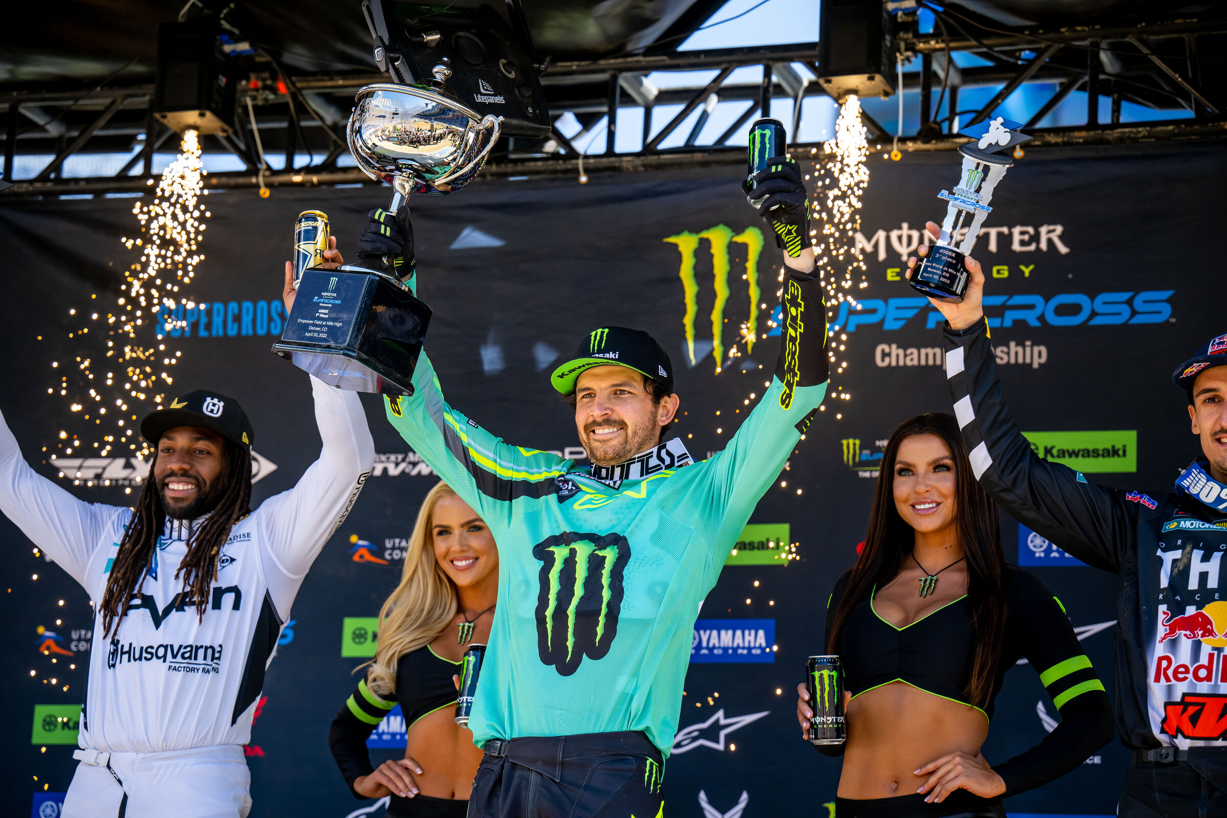 Jason Anderson is now officially not going to win this year’s Monster Energy AMA Supercross Championship, as Eli Tomac just clinched it, but the new member of Monster Energy Kawasaki is still having an amazing season. He now has a three-race win streak after barreling through the field again in Denver, arguably looking better than he ever has before. Does the great season, and the streak, take some of the sting out of finishing second in the championship? He talked about these topics and more in the post-race press conference.