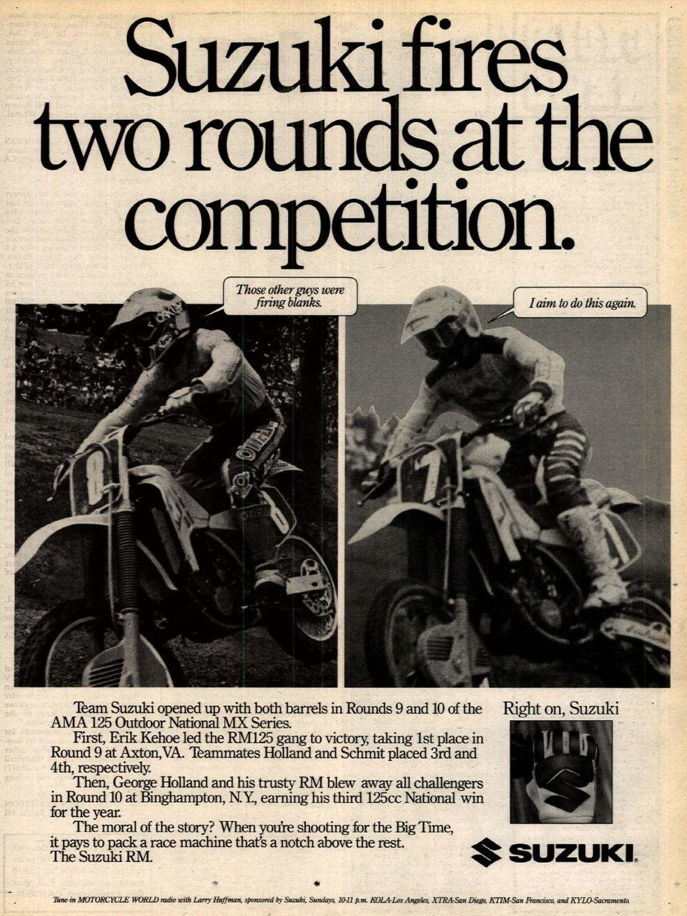 Only maybe 1978 was bigger for Yamaha. That's when the trio of Bob Hannah, Broc Glover, and Rick Burgett took every title on the circuit that year: AMA Supercross and 250 MX (Hannah), 125 MX (Glover), and 500 MX (Burgett). Hannah also won the Trans-AMA title, which was still a major deal in 1978, so all five AMA titles were with the bLU-cRU—though Yamahas were actually yellow back then!