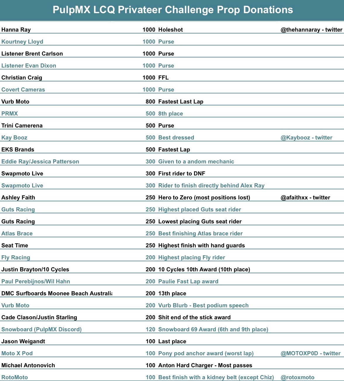 One of the bonus fun things about this race is people in the industry, people on social media all chipping in for various contingency bonuses. It started with Christian Craig giving the rider that is first to the finish line $1,000 and it's gotten weirder and bigger ever since. Attached is the contingency right now that's added to the 100K we're giving out. [Ed. note: If you weren’t a fan of @afaithxx Ashley Faith’s before today.…]