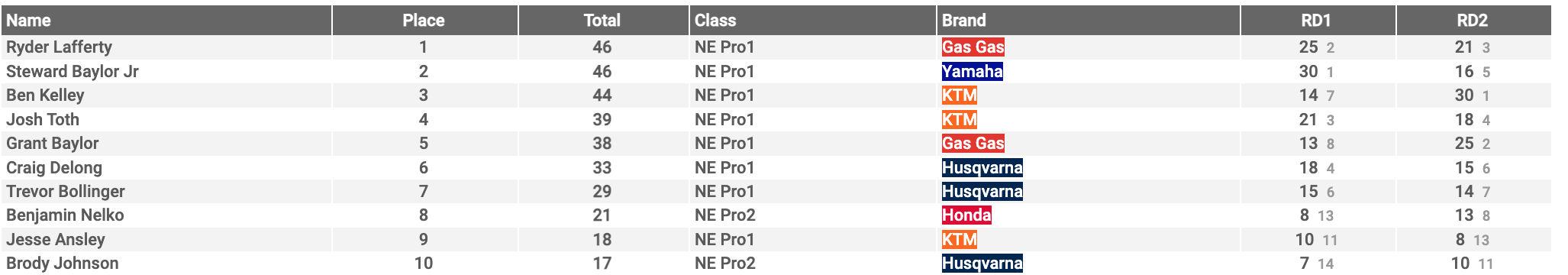 | Cody Barnes (Honda) | U.S. Sprint Enduro | Pro 2 |