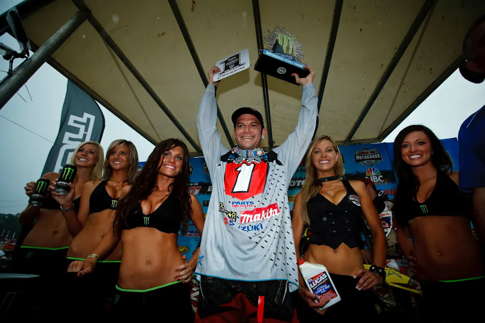 In the 250 class the battlelines were drawn between Suzuki’s Ryan Dungey, second in the 2008 250 MX series and the 2009 West Regional Champion in Supercross Lites, and Frenchman Christophe Pourcel, a former MX2 World Champion and the 2009 Eastern Regional Champion in Supercross Lites. Their battle did not disappoint, and they traded wins and the points lead all season long. Late in the year Pourcel stretched out a small gap, but then his Monster Energy Pro Circuit Kawasaki blew up at Southwick. Dungey had the break he needed to retake the advantage, while aggressive rookie Justin Barcia took his first professional win that day. Barcia had already made a splash by leading laps in his first pro race at the season-opening round, but he wasn’t quite strong enough to hold on to win that race. That’s not really a realistic goal, anyway, right?