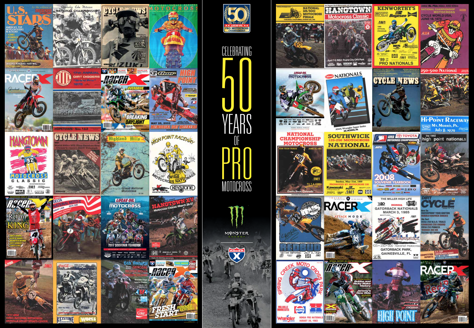 There is also a sweet pullout poster in the book (as well as the latest issue of Racer X Illustrated) of Ferrandis on one side and a cool collage we came up with celebrating 50 years of AMA Pro Motocross through race images, magazine and program covers, the pages of Cycle News, and more.