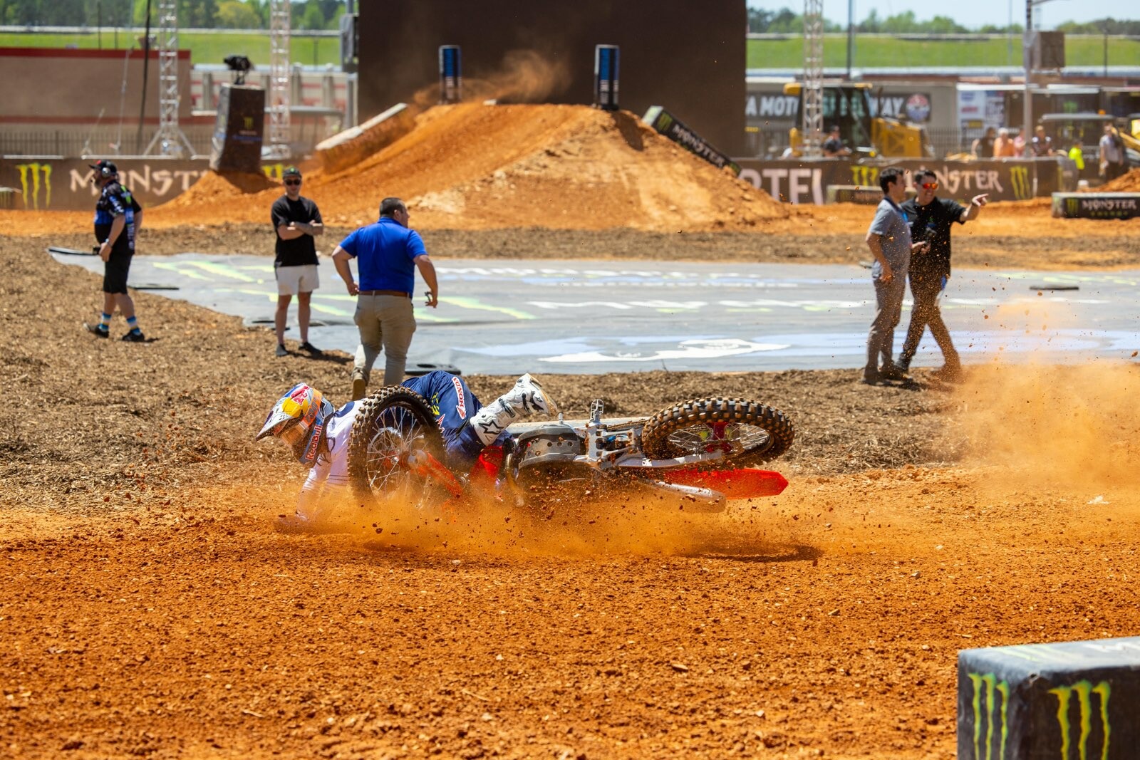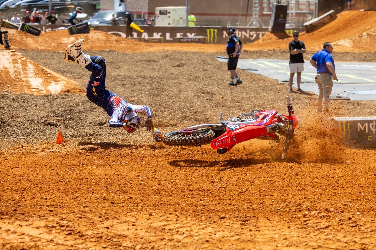 Check out Hunter Lawrence's media day crash on the massive triple at Atlanta Motor Speedway. Luckily Lawrence was not injured and actually went on to win the 250SX East/West Showdown the next day!