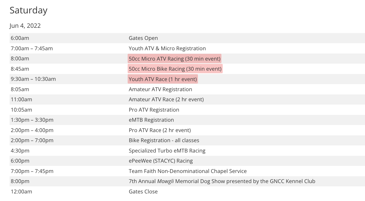Hangtown Motocross Classic Race Day Schedule | June 4