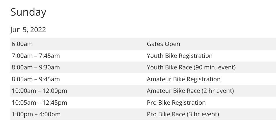 *Note: All times on the race day schedule local to Rancho Cordova, California.